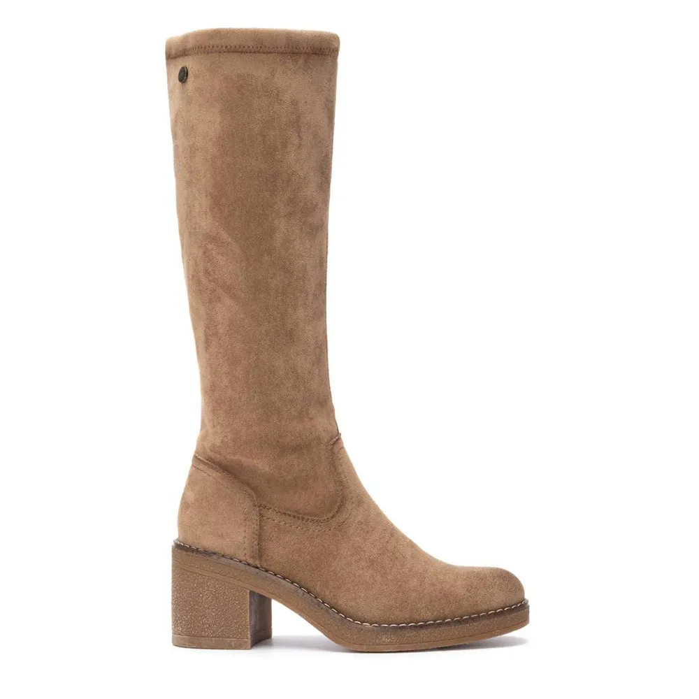 Женские ботинки от бренда Refresh. Изготовлены из мягкой замши. Внутренняя застежка на молнию. Высота голенища 34 см. нескользящий резиновый каблук 7 см. Со съемной стелькой. Эта модель сертифицирована как веганская всемирной организацией PETA (Организация по защите прав животных).