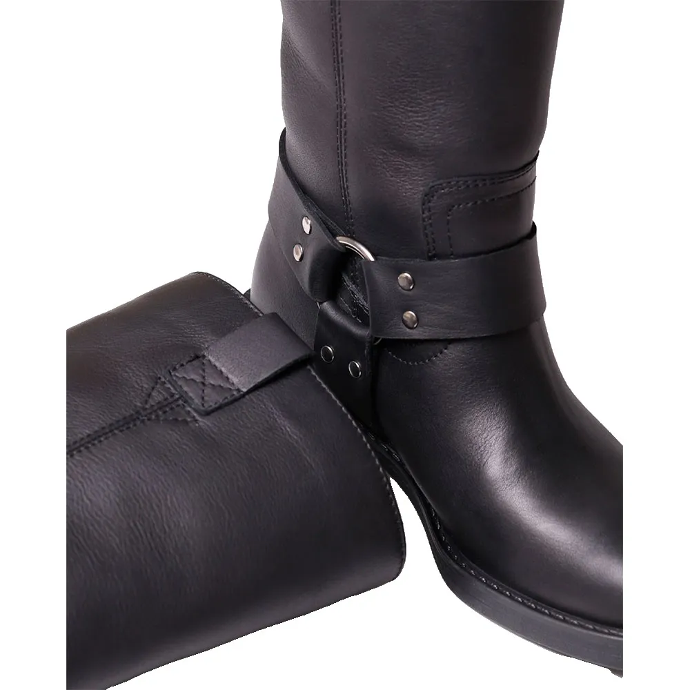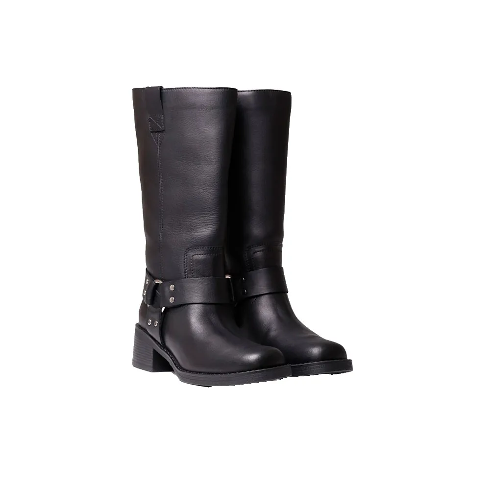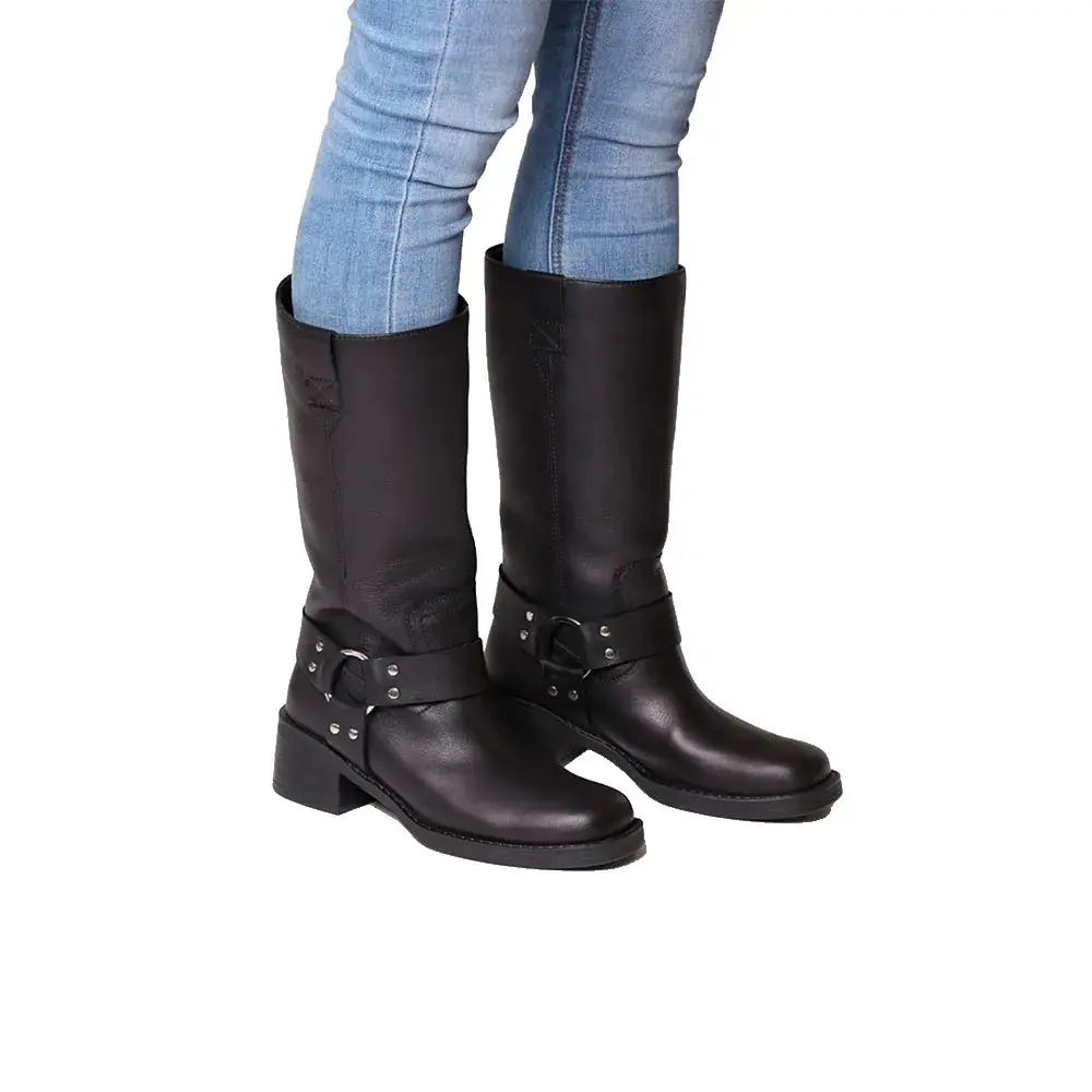 Эти женские ботинки в байкерском стиле сделаны из кожи.