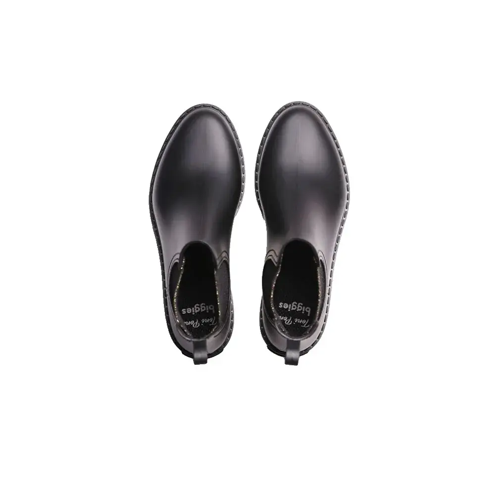 Эти женские резиновые ботильоны выполнены в темных и светлых тонах.