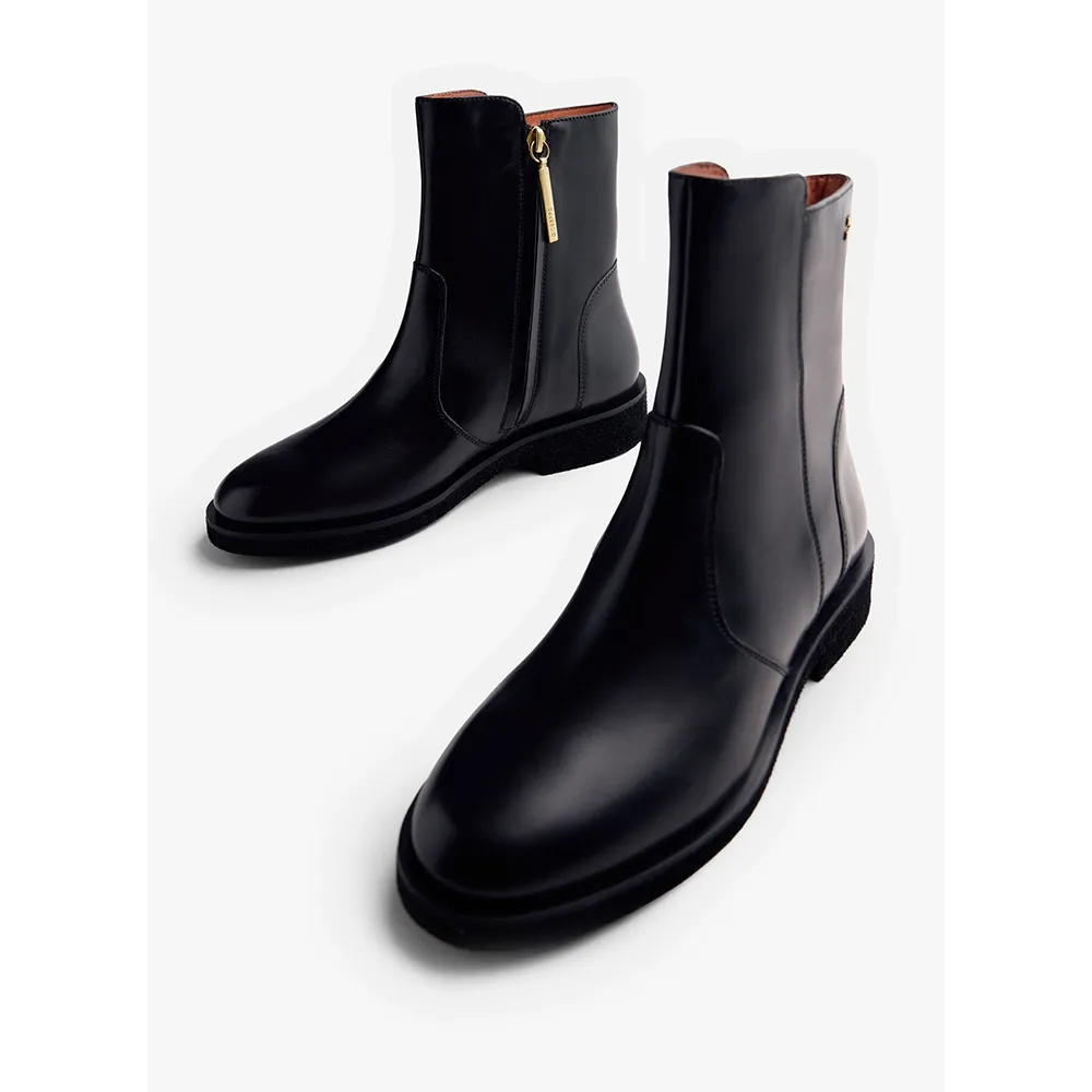 У них мягкая стелька и молния на внутренней стороне голенища.