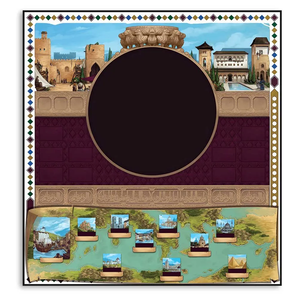 строительству Альгамбры, вырезанию стихов в ее комнатах и экспорту товаров по торговым путям. Все это будет происходить в течение 5 эпох (раундов), и в конце пятого и заключительного раунда победит игрок, набравший наибольшее количество очков престижа.
