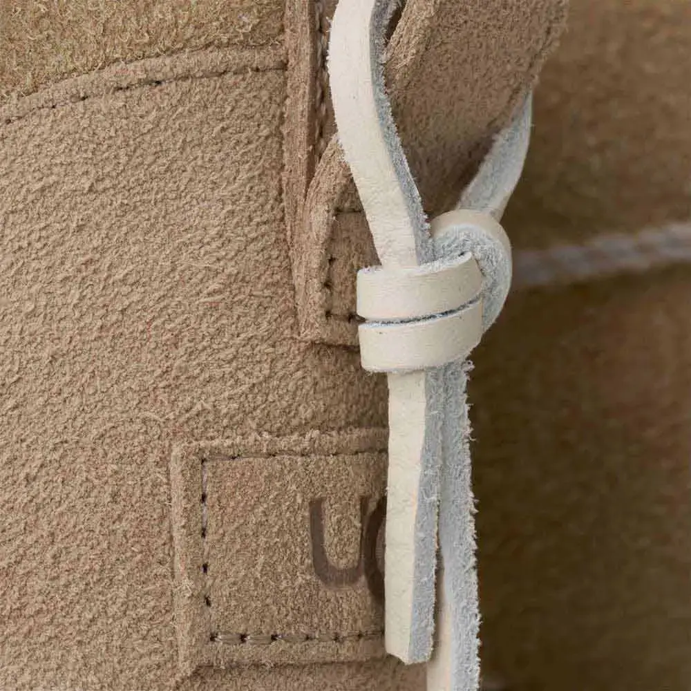 Наш Classic Ultra Mini Biarritz - это специальное издание нашего любимого Classic Ultra Mini, которое так и манит к пляжным кострам и непринужденным прогулкам по городу. Верх из текстурированной ворсистой замши дополнен еще более культовыми элементами с прошитыми деталями и кожаной кисточкой сзади. Внутри вы почувствуете себя в УГГАХ, которых так жаждете, с плюшевой подкладкой из натуральной овчины. Изготовлена на основе легкой подошвы EVA из сахарного тростника, что обеспечивает ощущение комфорта в тапочках как в помещении, так и на улице.