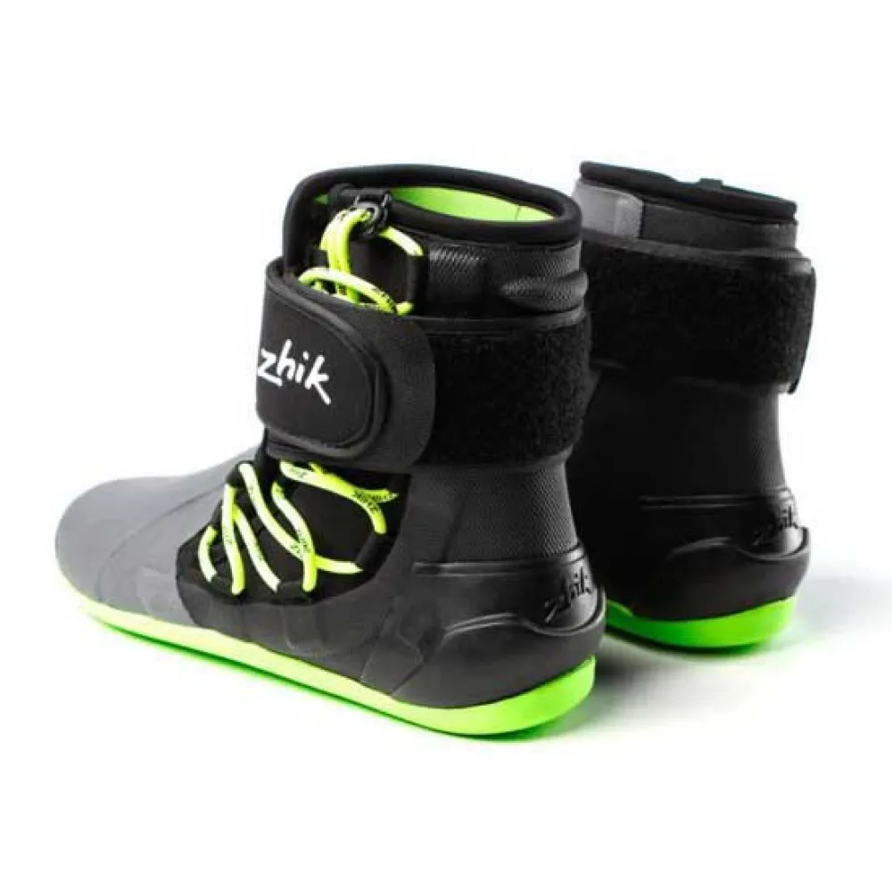 Новая линейка ботинок Zhik Dinghy, являющаяся развитием нашей предыдущей линейки, отличается улучшенным сцеплением и долговечностью, а также большим комфортом. Высокий берец - это обновление любимой модели среди парусного сообщества и универсального варианта. Новая формованная подошва из резинового состава обеспечивает еще лучшее сцепление. Новая система шнуровки Quick Lock упрощает надевание и снятие. Улучшенная конструкция ремешка на щиколотке уменьшает объем, но сохраняет поддержку. Усиленная межподошва и формованная пятка добавляют структуре и поддержке ботинку. Ботинок создан на основе уникальной эргономичной колодки Zhik, что обеспечивает более плотную посадку с большим комфортом и меньшим натиранием. Благодаря 4-миллиметровой конструкции из неопрена и 2-миллиметровому резиновому верху эти ботинки подойдут для занятий парусным спортом круглый год.