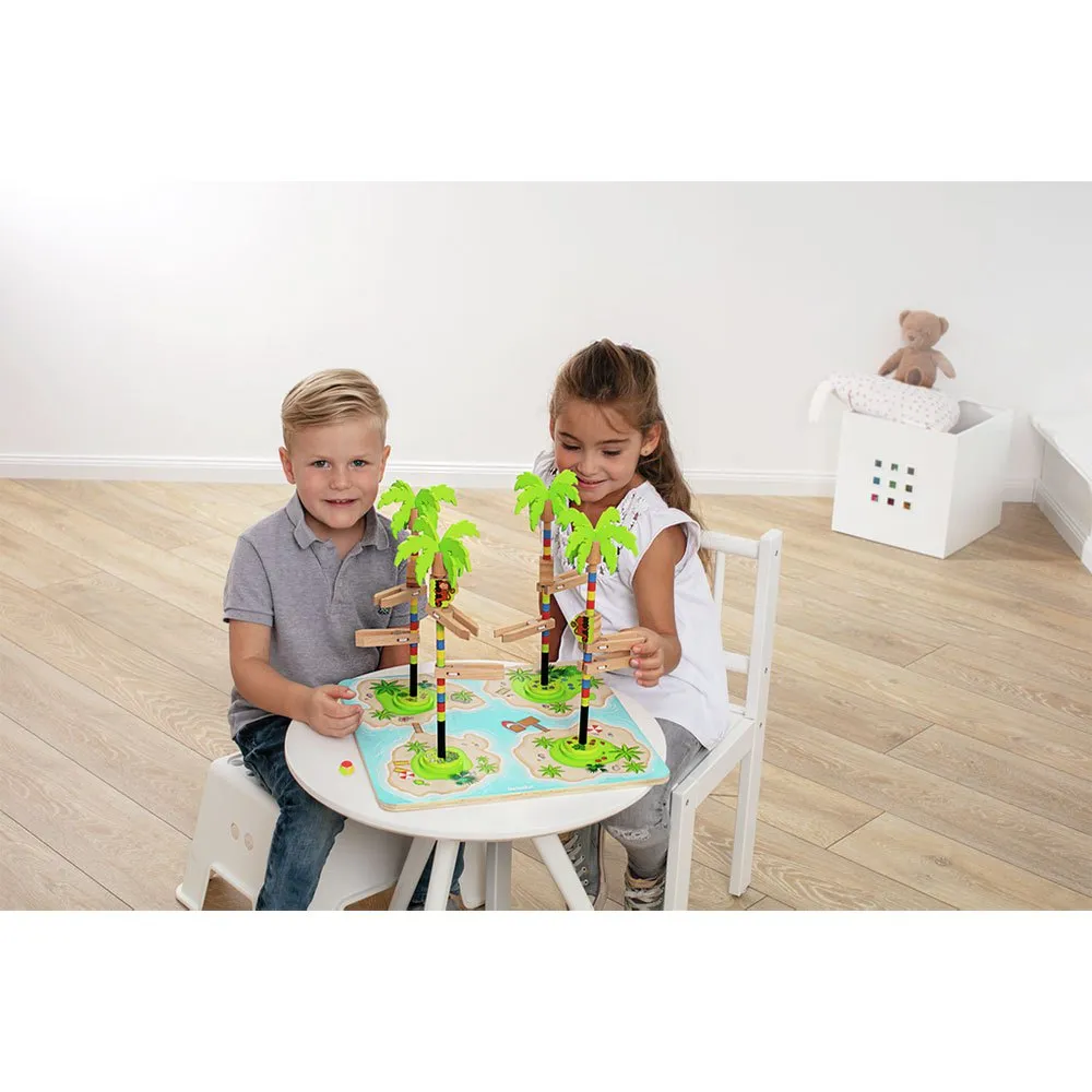 Тщательно выбирайте свой следующий ход, потому что всегда есть шанс, что обезьяна немного поскользнется на пути к пальмовым листьям! Какая обезьяна быстрее всех доберется до спрятанных кокосов?.