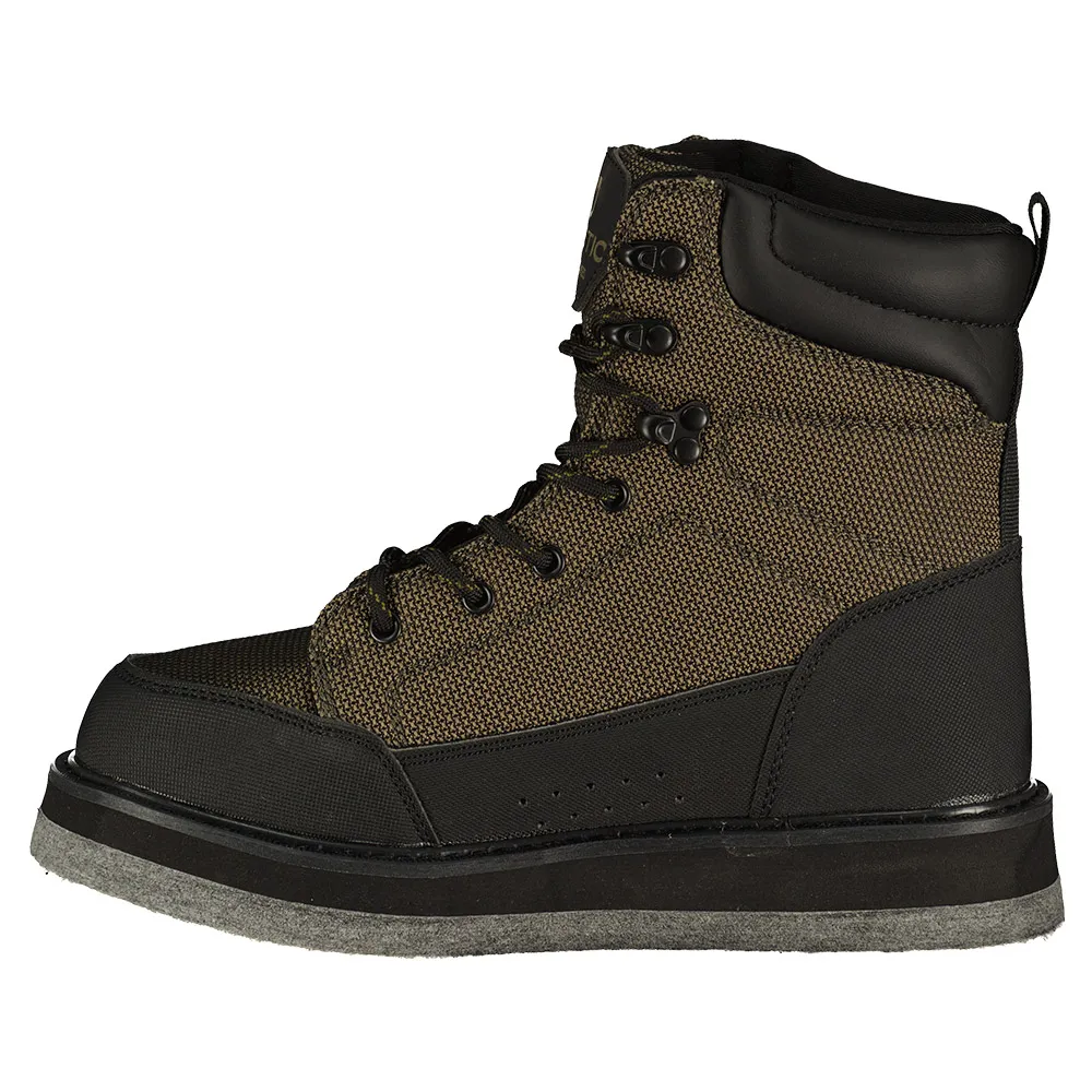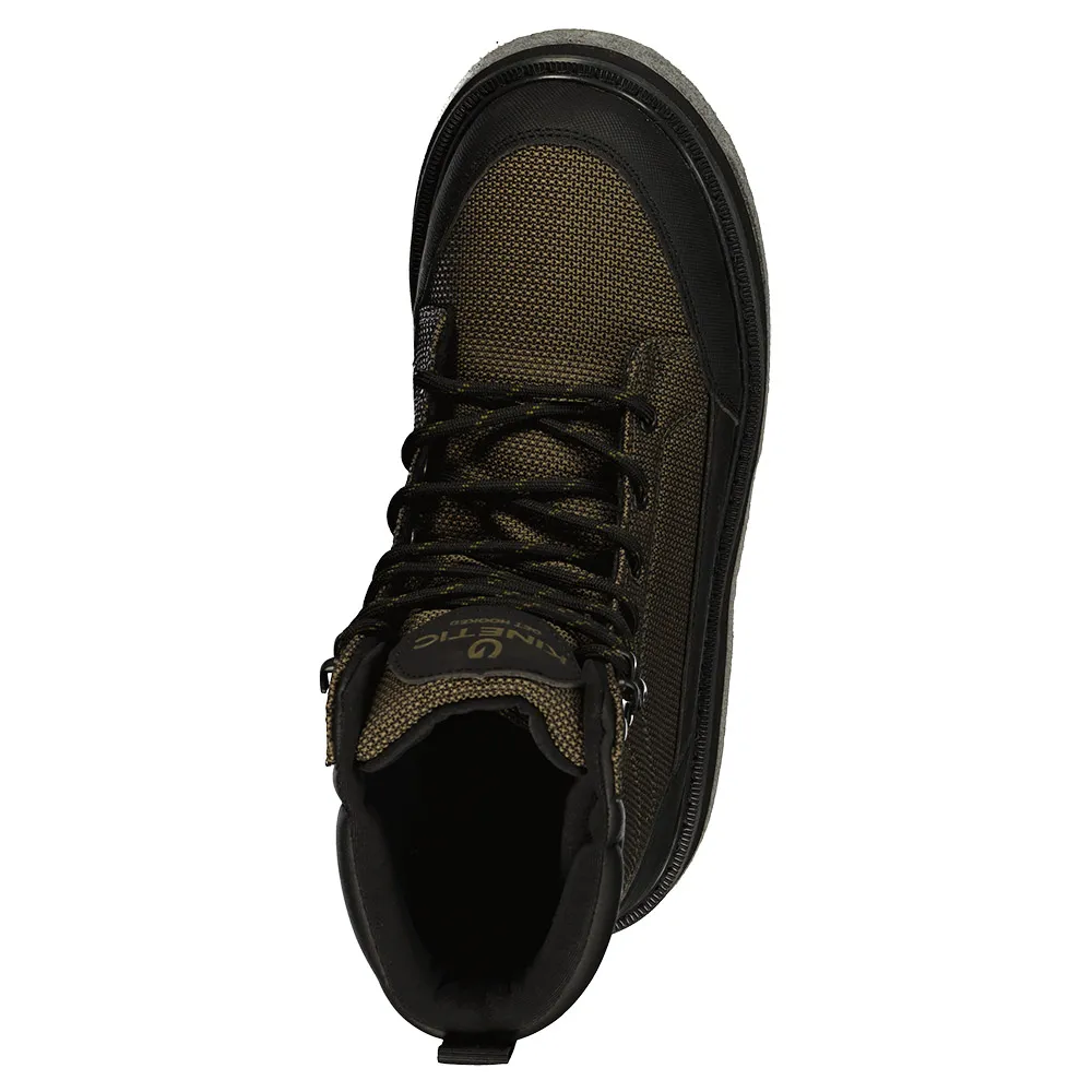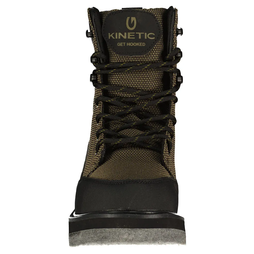 Положитесь на надежную опору и защиту на вашем любимом месте рыбалки с Kinetic RockGaiter II. Мягкий бортик обеспечивает комфорт и посадку этих забродных ботинок, а мягкие стельки обеспечивают комфорт и поддержку в течение всего дня. Система шнуровки с крючками для шнурков сверху обеспечивает плотную посадку, а также выступы для больших пальцев на пятках. Дренажные отверстия по бокам быстро отводят воду. Войлочная подошва обеспечивает надежное сцепление на скользком дне рек и камнях.