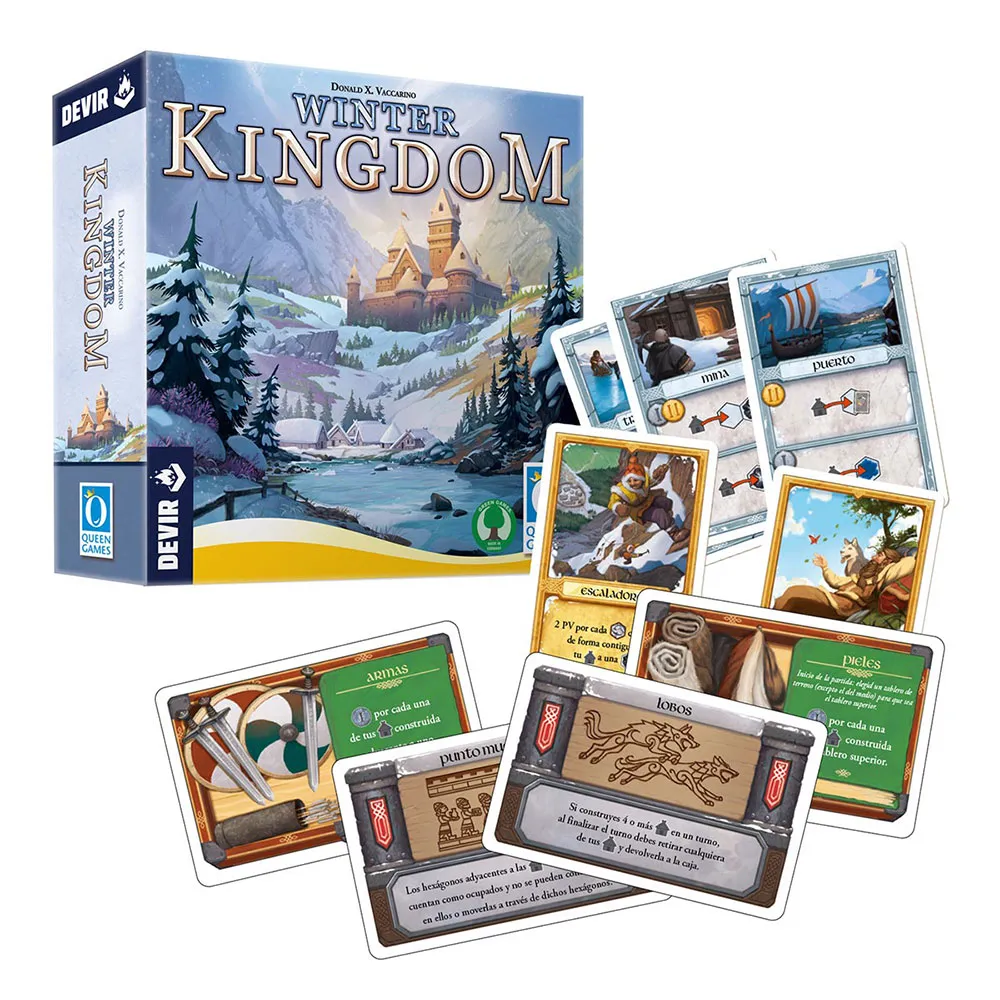Постройте самое процветающее королевство замерзших зимних земель, используя свою изобретательность! В этой новой версии знаменитой игры Kingdom Builder, удостоенной премии Spiel Des Jahres, игроки будут соревноваться за наибольшее возможное количество очков, возводя прочные дома на большой модульной доске, образованной шестиугольниками, на которых изображены различные типы земель.