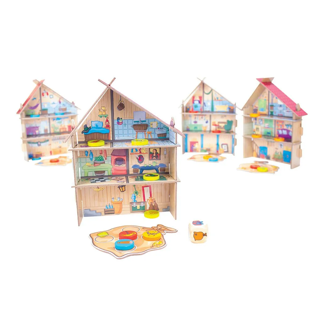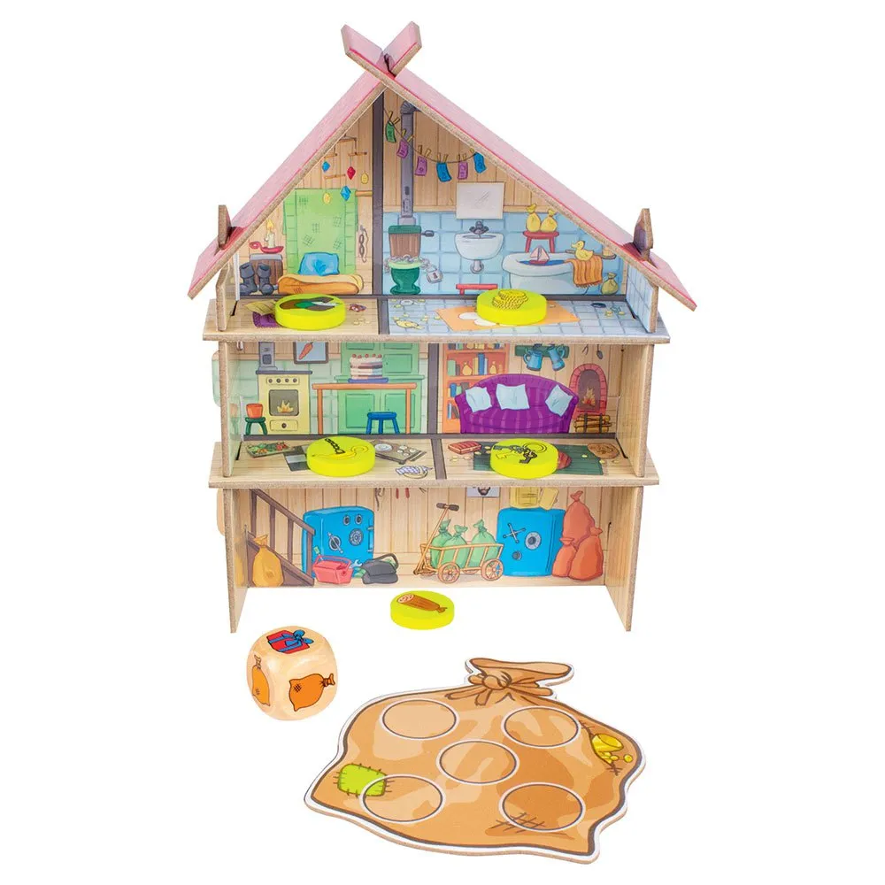С помощью этой занимательной настольной игры малышам предстоит выяснить, где спрятаны предметы, которые спрятали другие воры, задавая правильные вопросы.