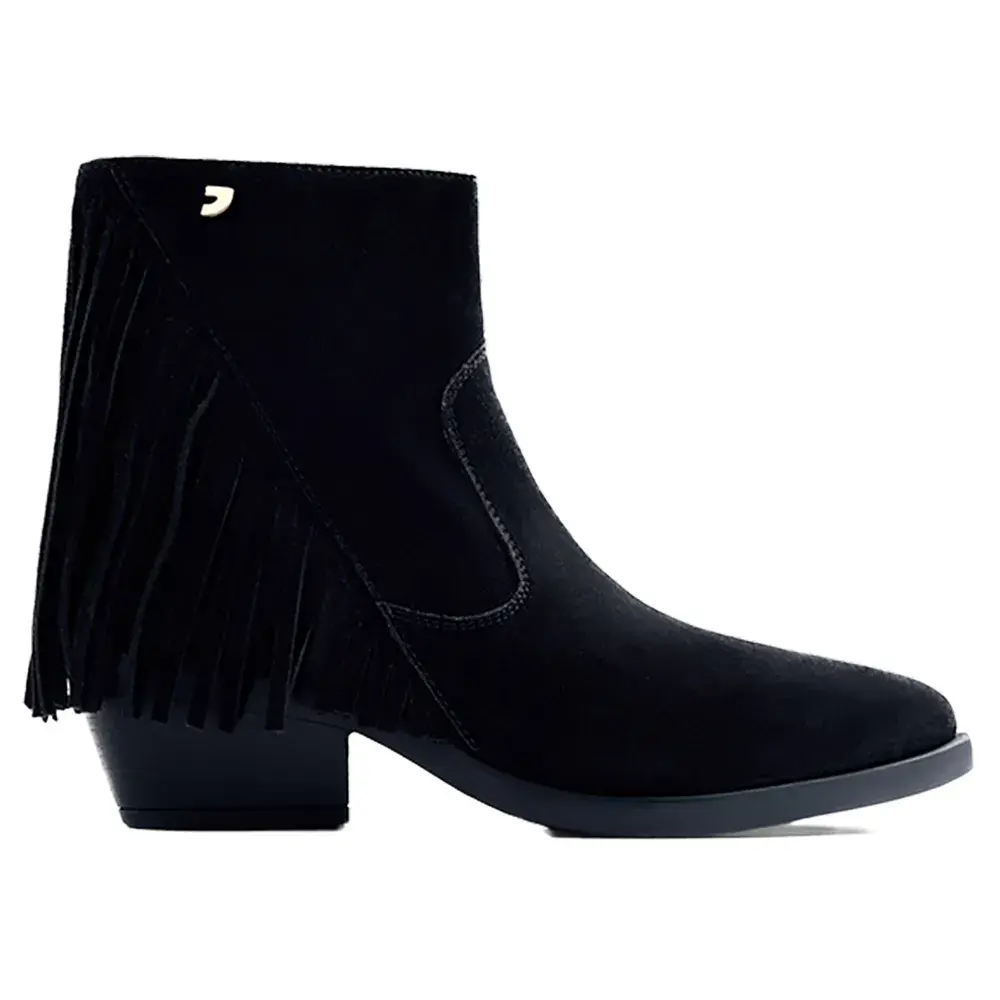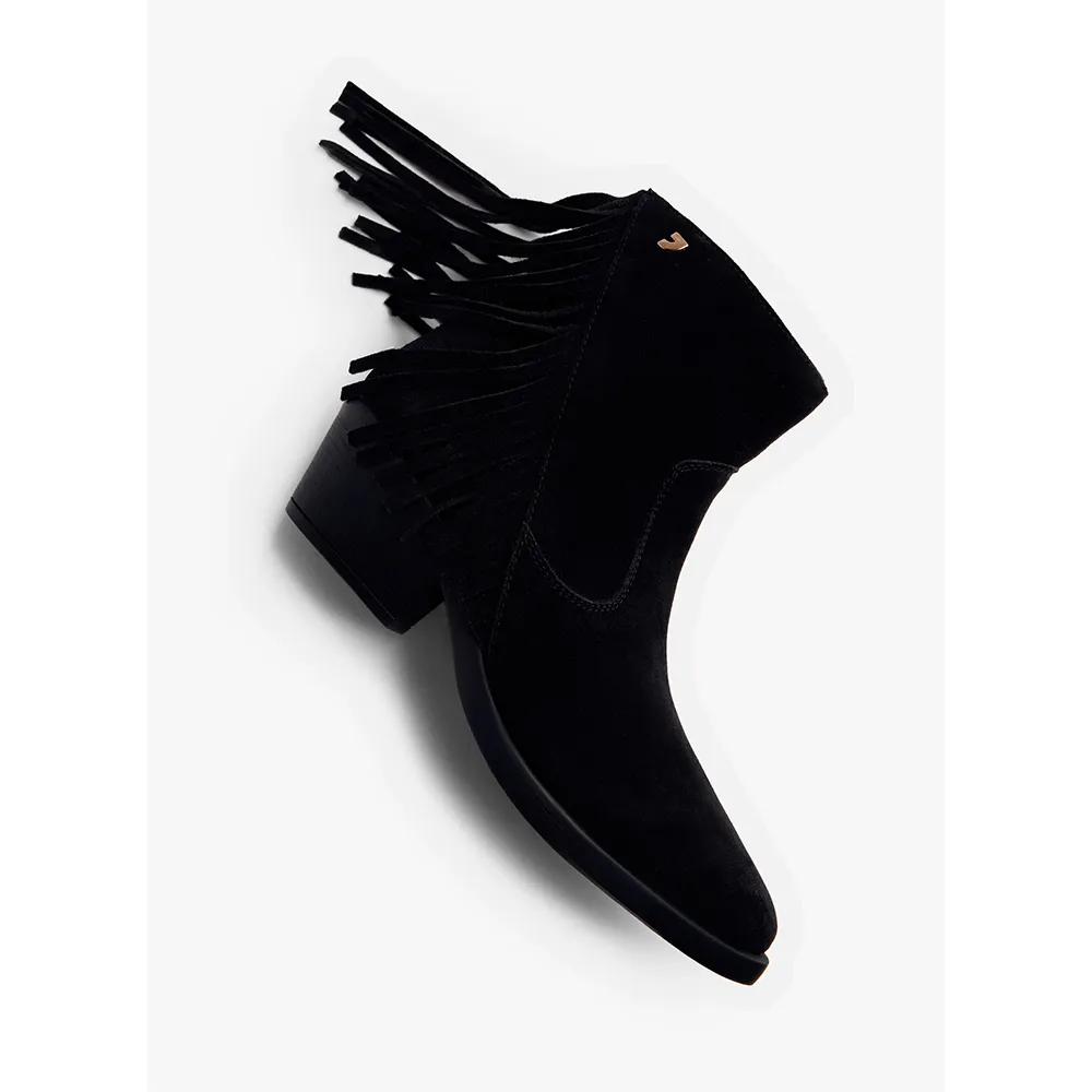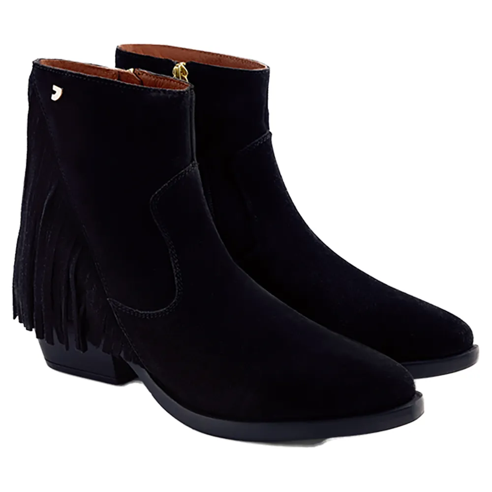 Сапоги в ковбойском стиле из замши с каблуком и бахромой.