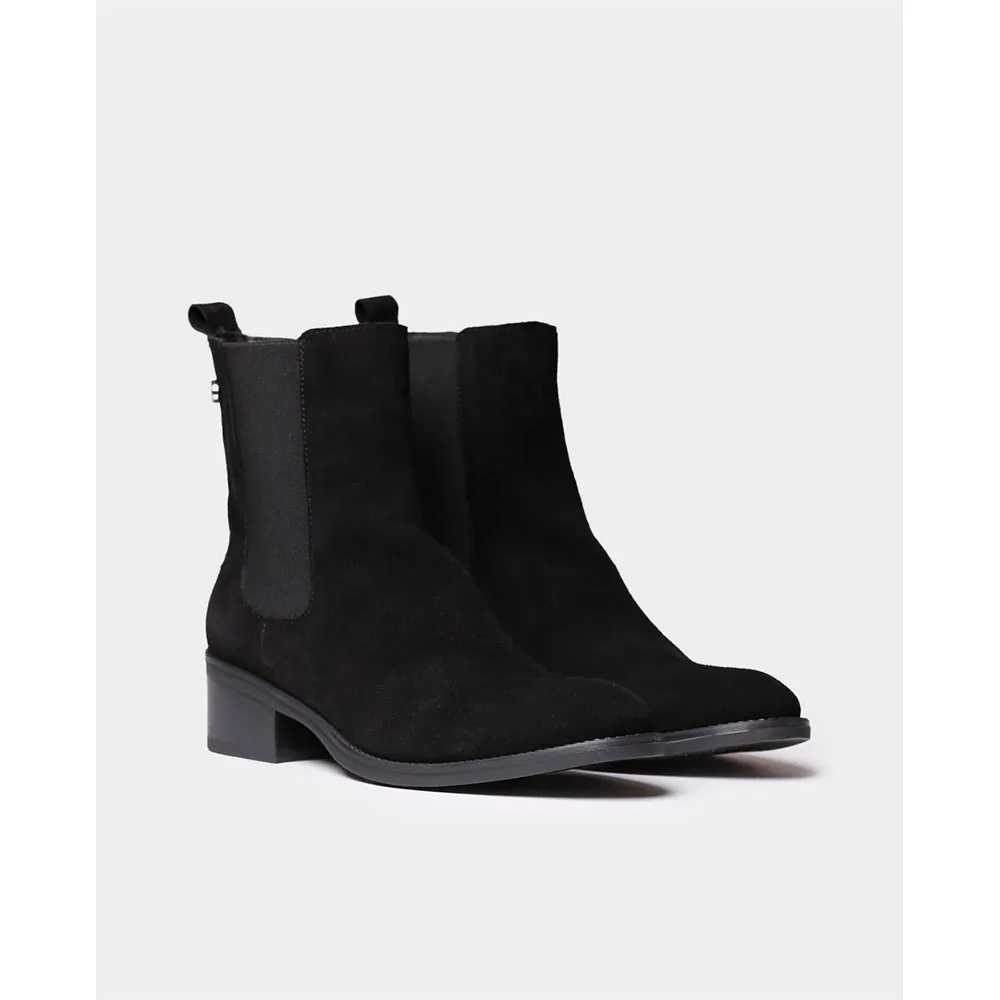 Эти женские ботильоны выполнены из замши и украшены резинками в тон.