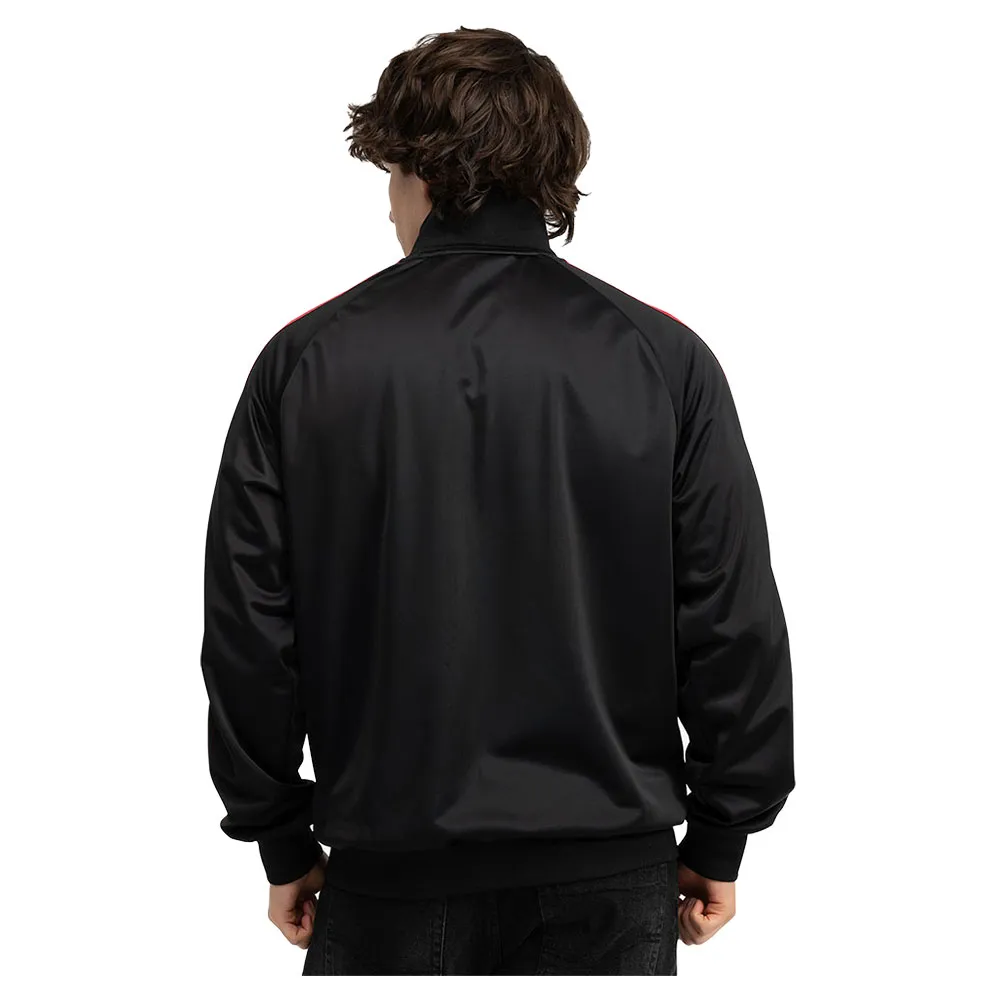 Тренировочная куртка с воротником-стойкой и двумя карманами на молнии спереди. На одной из двух панелей в области груди имеется резиновый значок 3D. Удобные рукава реглан визуально подчеркнуты двумя нашитыми полосками контрастного цвета.