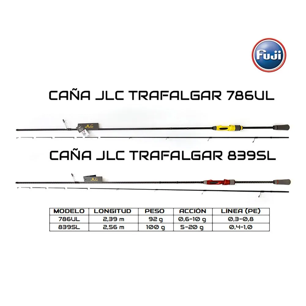 Наши удилища JLC Trafalgar предназначены для легкой рыбалки, рокфишинга и ультралегкого спиннинга. Бланки изготовлены с использованием новейших технологий в области микроджиггинга: перекрывающиеся слои карбона 30T и 40T, а также X-образная отделка с 3-миллиметровым карбоном. Этот карбон обеспечивает дополнительную прочность для беззаботной борьбы с крупной рыбой, а его гибридная (цельная) вершинка гарантирует высокую чувствительность при ловле виниловых приманок, джиговых приманок и небольших пескарей, позволяя ловить ультралегкую и техничную рыбу. Оснащены кольцами FUJI ALCONITE и катушкодержателем FUJI TVS M16-15.0/B. Успешно протестированы при поимке крупного желтохвоста, тунца, морского окуня, пятнистого морского окуня, леща... Эти удилища созданы для того, чтобы максимально эффективно ловить любую рыбу. С ними ультралегкая рыбалка выходит на новый уровень.