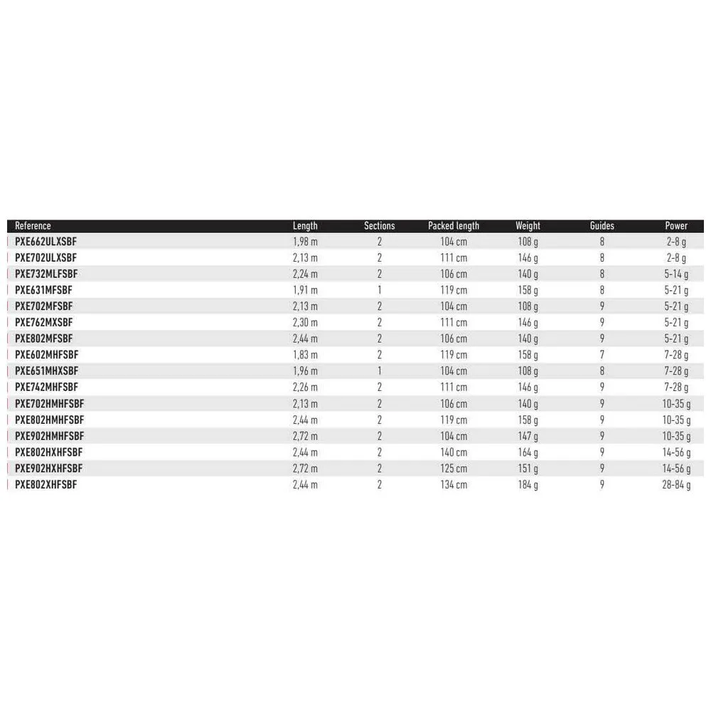 Серия удилищ Prorex E охватывает весь спектр ловли хищников. Модели весом от 2-8 г до 28-84 г подходят для любых тактических задач: от ловли окуня на глубину и судака (вертикально или с отскока) до ловли крупной щуки на большие мягкие приманки. Высокомодульные карбоновые бланки с выразительным строем вершинки одинаково хорошо работают как с воблером, так и с мягкими приманками. Эргономичная рукоятка с вырезом обеспечивает прямой контакт с бланком. Комлевая часть усилена карбоновыми витками, расположенными под углом 45°. Оснащены направляющими Fuji с оправами K и керамическими вкладышами Alconite, специально разработанными для ловли на плетенку.