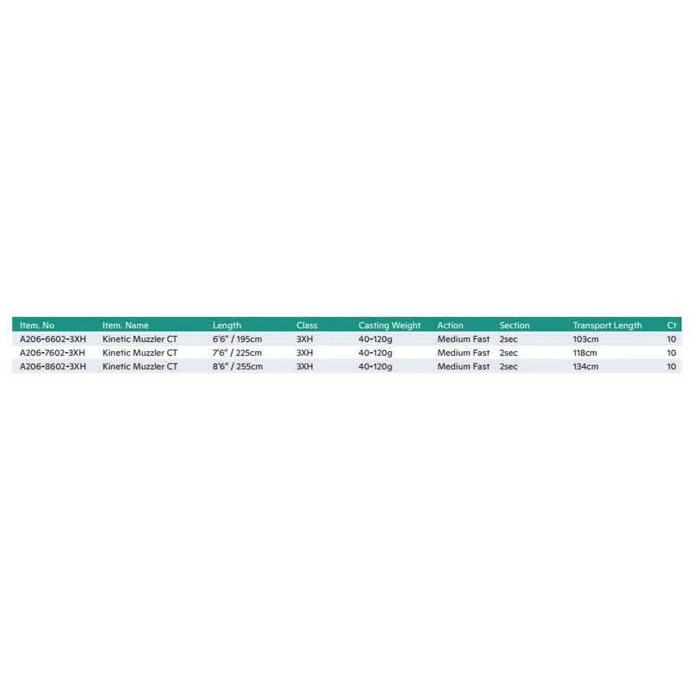 Созданное на основе опыта, спиннинговое удилище Kinetic Muzzler CT обеспечивает как мощность для вываживания крупной рыбы, так и изящество, позволяющее часами работать с тяжелыми приманками. Это серьезное удилище для ловли крупной рыбы, легкое, но невероятно прочное, изготовленное на бланке CarbonTech. Сверхпрочная комлевая часть и чувствительная вершинка обеспечивают необходимую отзывчивость для максимального улова. Список качественных характеристик включает в себя премиальные кольца SIC, предотвращающие запутывание, прочный катушкодержатель и рукоятку EVA с раздельной рукояткой.
