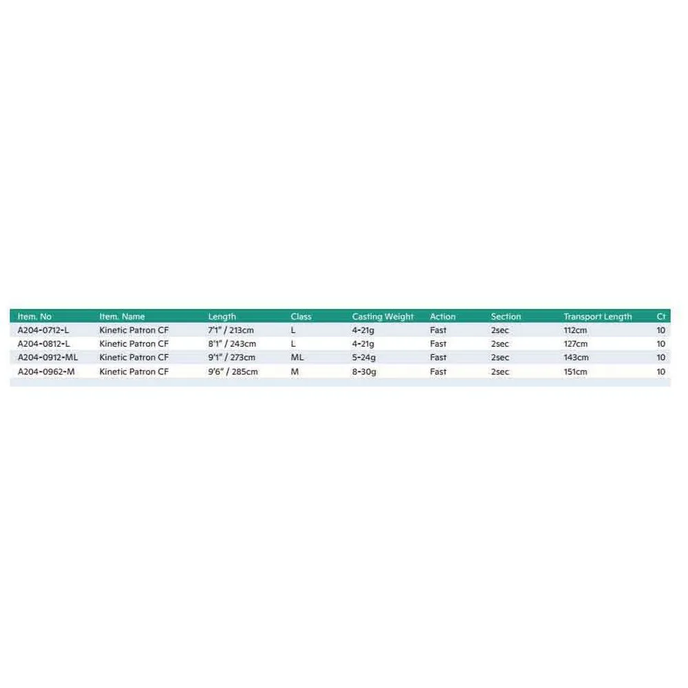 Элегантный, но мощный спиннинг Kinetic Patron CF выводит производительность удилища на новый уровень в своей ценовой категории. Премиальный карбоновый бланк изготовлен из эксклюзивных волокон CarbonFusion, что обеспечивает удилищу тонкий диаметр, сверхчувствительность и невероятную прочность на разрыв и ударопрочность. Общий баланс улучшен благодаря сверхлегким кольцам Single High Frame премиум-класса, что обеспечивает улучшенный заброс с более легкими приманками. Легкий катушкодержатель и полностью пробковая рукоятка обеспечивают превосходную отзывчивость при каждом забросе.