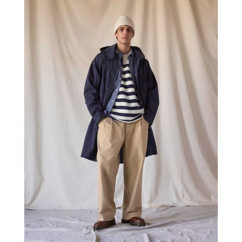 Классическая парка "Рыбий хвост", изготовленная из дышащей японской ткани Ventile weather, со съемным капюшоном, штормовкой и свободной посадкой.