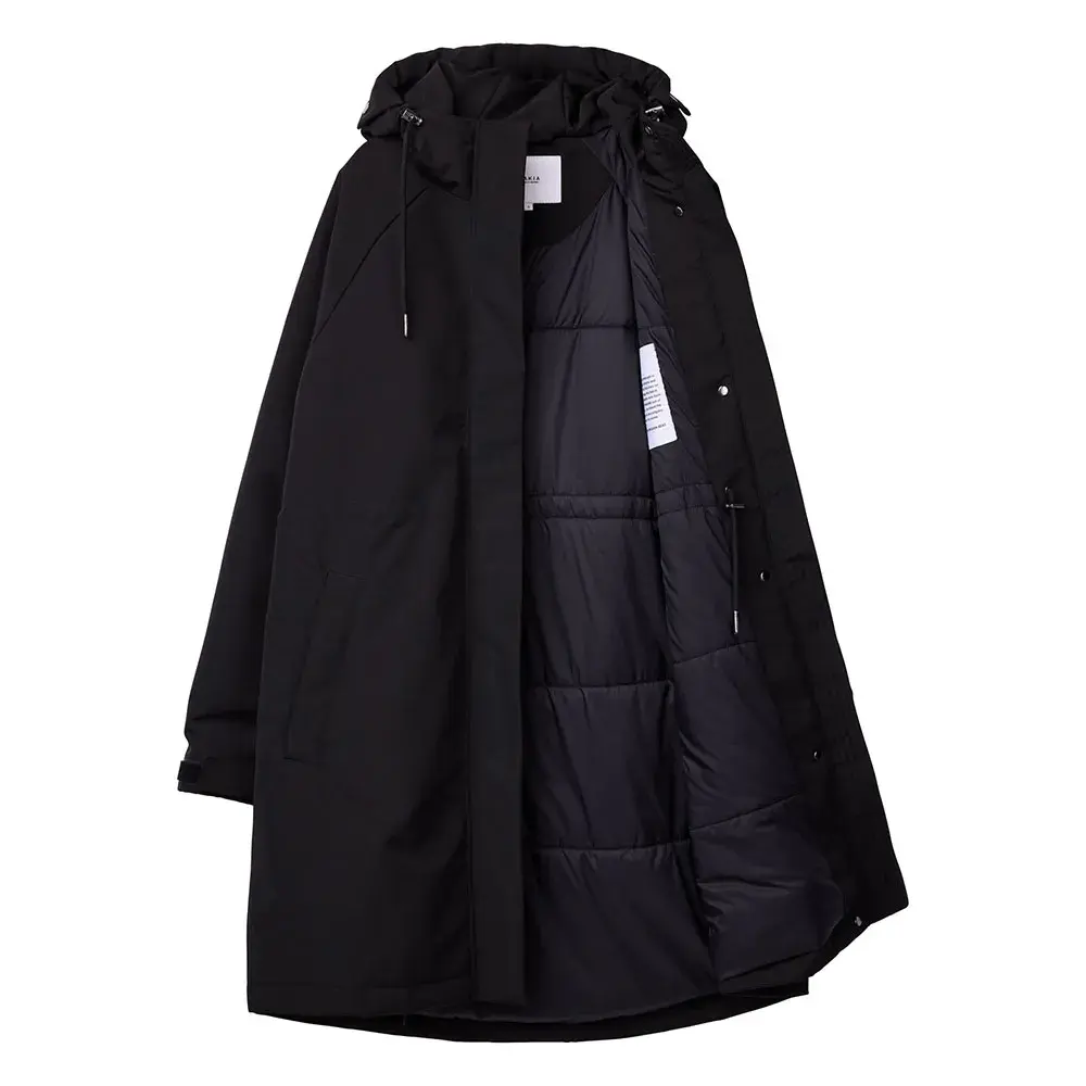 Пальто Kaija оснащено капюшоном со сложенным козырьком для защиты и водяным столбом толщиной 3000 мм, защищающим от легкой мороси.