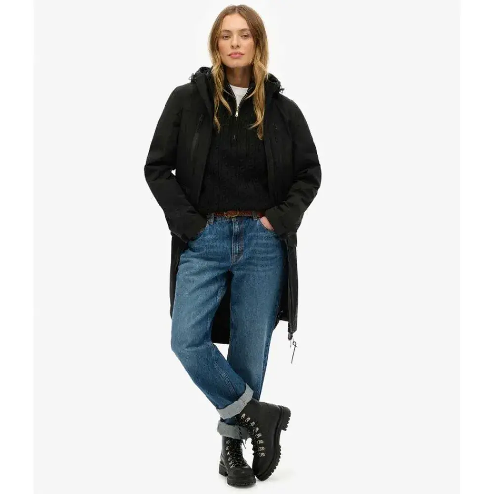 - Капюшон с регулируемыми шнурами и вторым воротником.