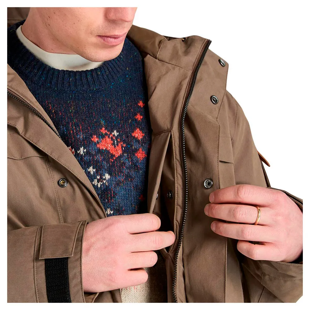 Изготовленный из смеси 72% хлопка и 28% нейлона, он упакован с 600 г утеплителя Re: DownB и оснащен водонепроницаемой технологией уровня 3 с полностью герметичными швами, которая поможет вам сохранять тепло и комфорт под дождем и снегом.