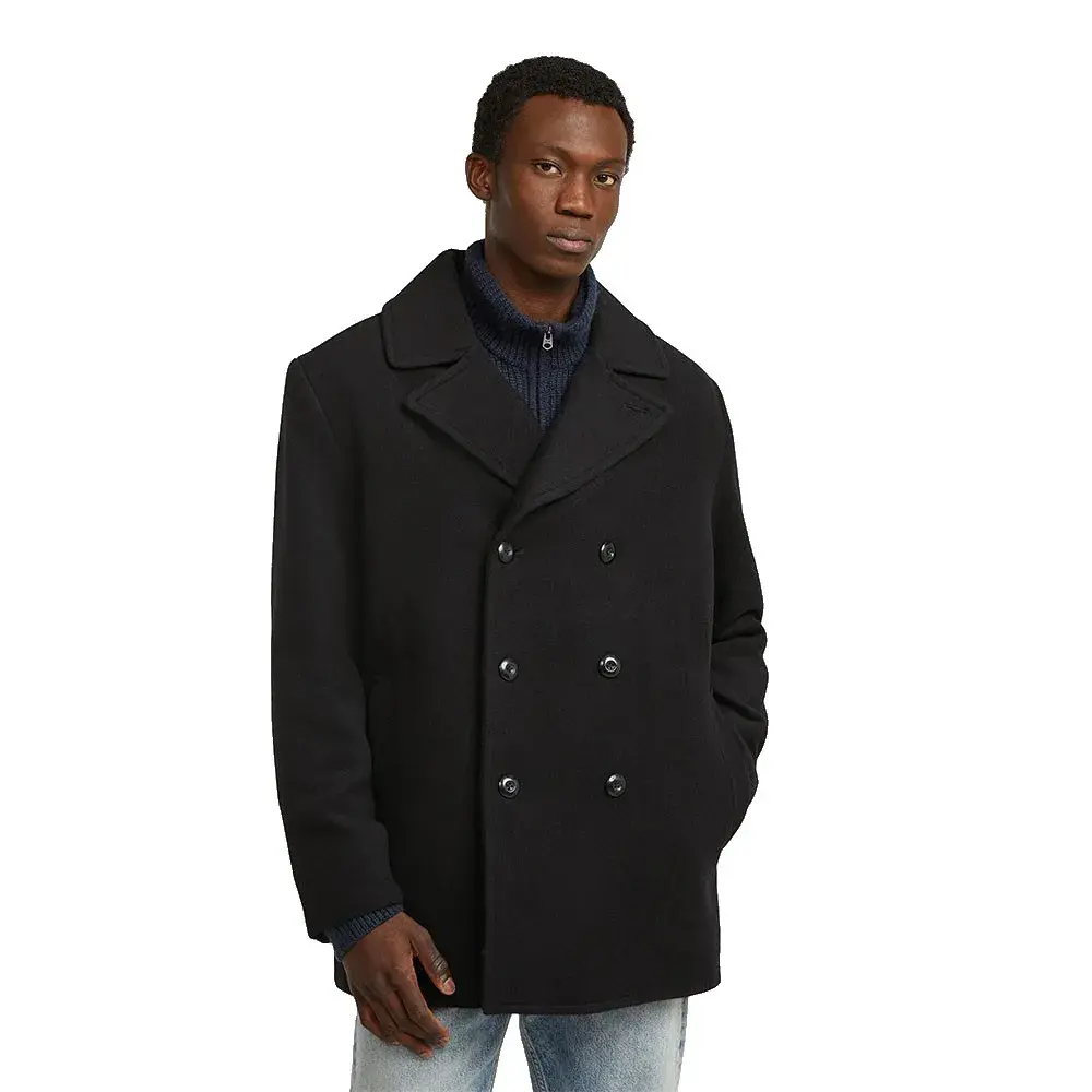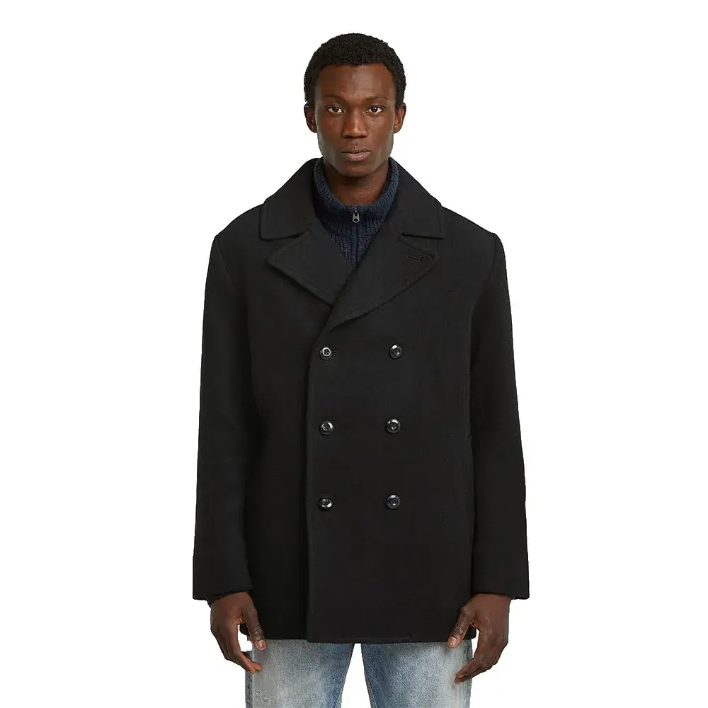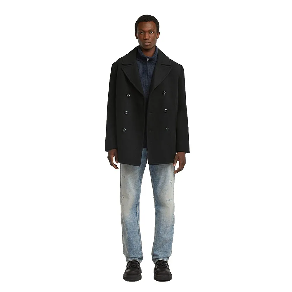 Шерстяной бушлат классического двубортного дизайна с воротником-лацканом создает неподвластный времени и утонченный образ.