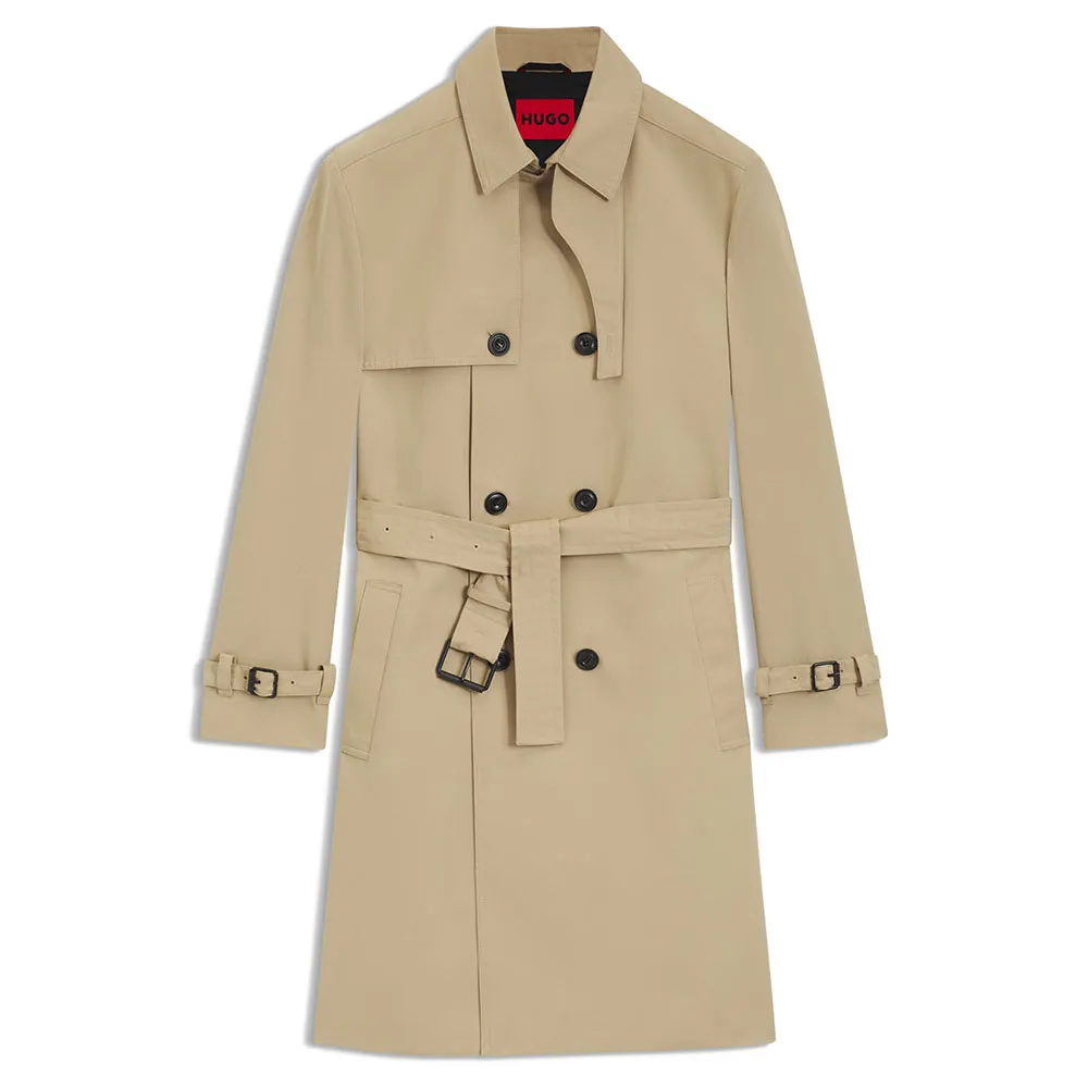 Этот мужской тренч из габардиновой саржи с добавлением хлопка обычного покроя от HUGO представляет собой свежий взгляд на классику. Пояс и штормовка. Водоотталкивающее средство.