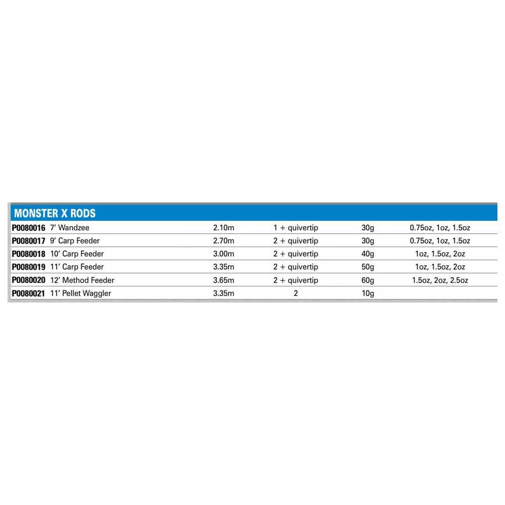 Самым тяжелым фидерным удилищем в линейке Monster X является 12 футов Метод Карп Фидер. Это удилище идеально подходит для случаев, когда требуются более крупные кормушки и дополнительная дальность заброса.
