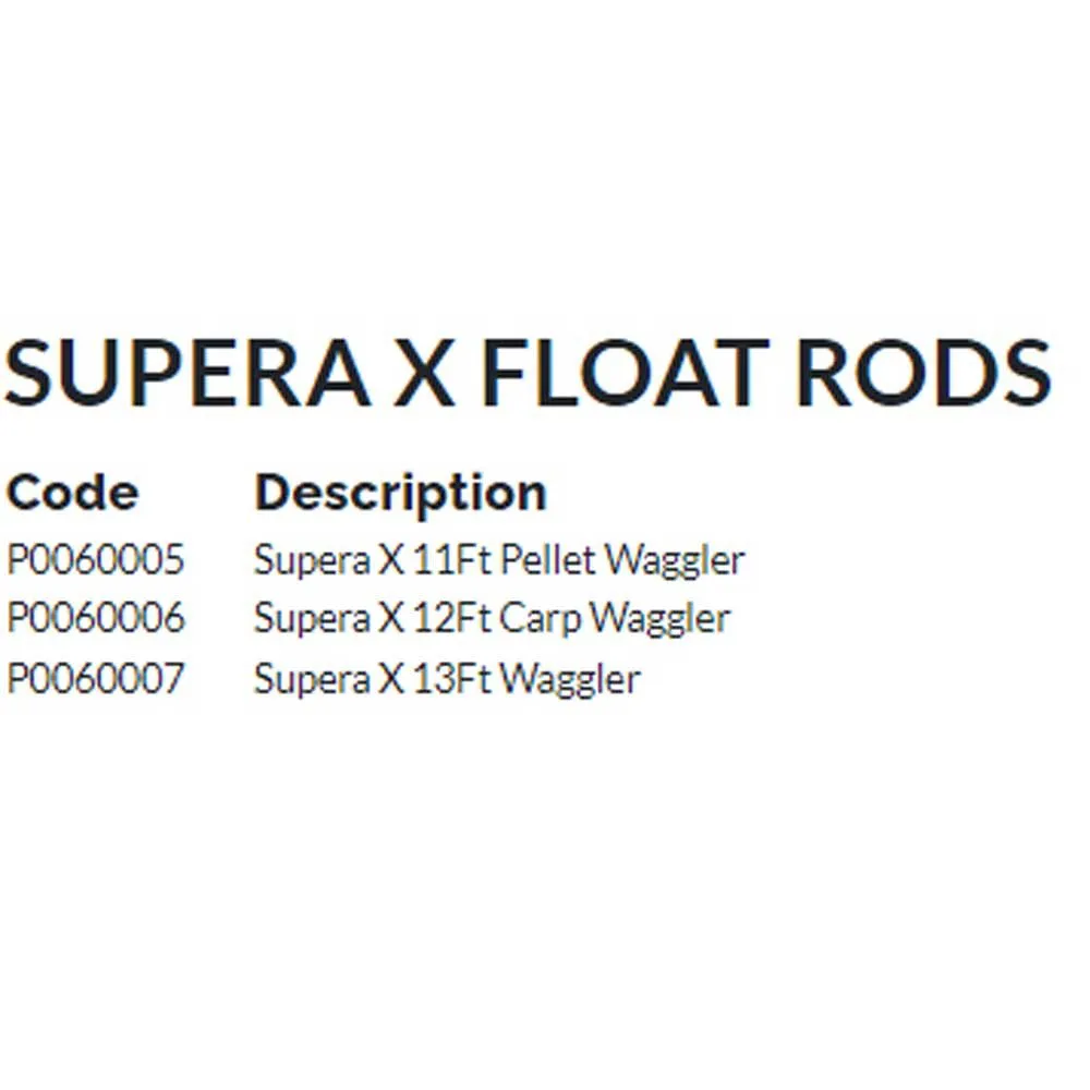 Удилища для ловли вагглерами Supera X. Серия удилищ Supera X разработана специально для удовлетворения потребностей современной поплавочной ловли и является вершиной дизайна поплавочных удилищ. Три модели охватывают как коммерческий, так и естественный стиль ловли. Каждая модель отличается плавным строем и превосходным балансом, что позволяет с легкостью держать эти удилища в руках весь день.