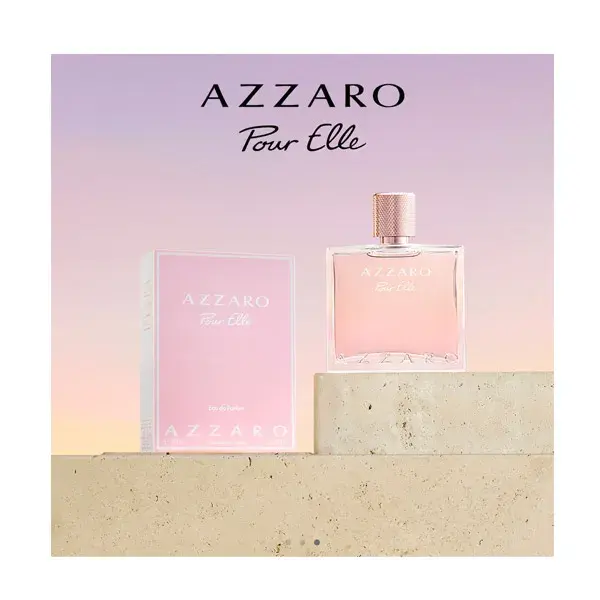 Подобно розовому макарону, Azzaro Pour Elle дарит сладкие ноты, восхитительный луч солнца.