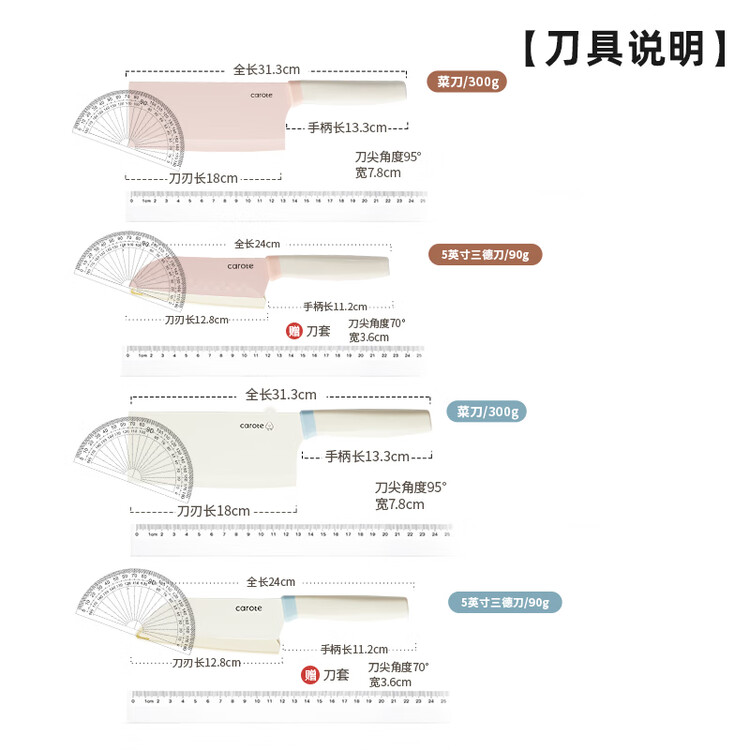 Carote Белый - [2 ножа + разделочная доска + ножницы + держатель для ножей]. Категория: Разделочный нож. Спецификации: 60° и выше, 18 см, 133 мм