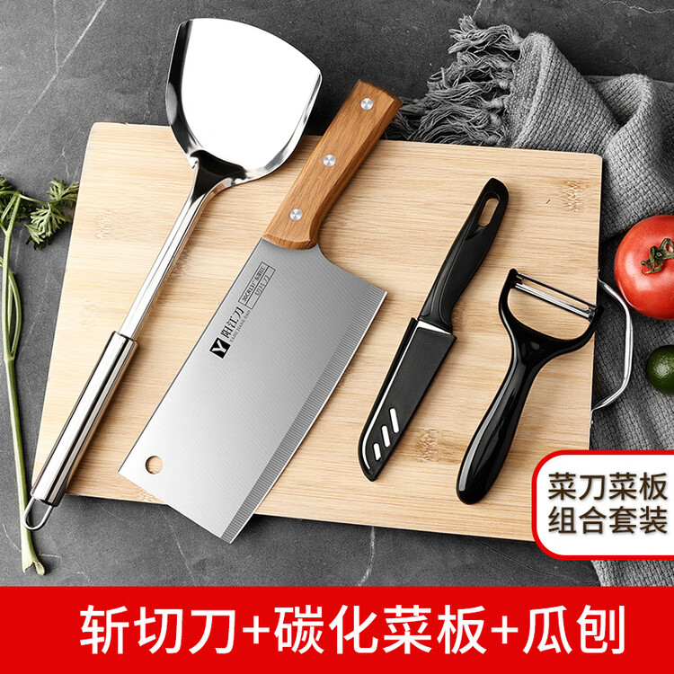 Plys [Набор для резки и приготовления] Нож для нарезки с квадратной ручкой + Разделочная доска + Нож для фруктов + Лопатка. Категория: Японский кухонный нож. Спецификации: 60° и выше 17,3 см 112 мм