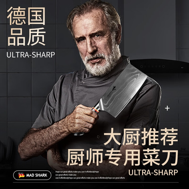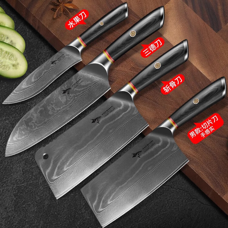 Mad Shark Набор мужских ножей: нож для нарезки + топор + нож сантоку + нож для фруктов. Категория: Японский кухонный нож. Спецификации: Более 60, 18,2 см, 13,5 см