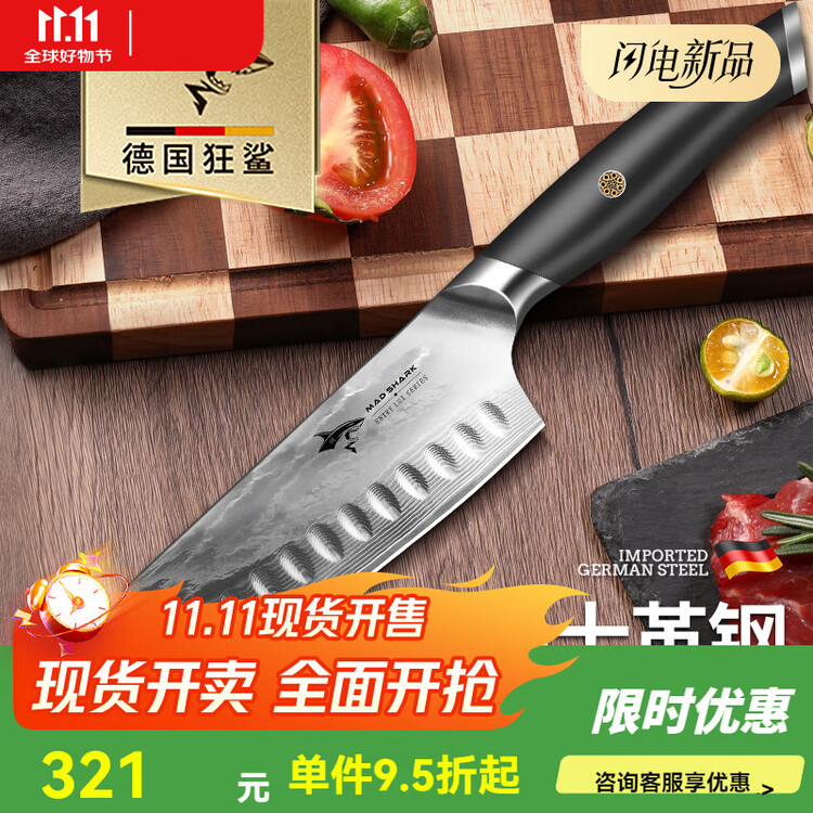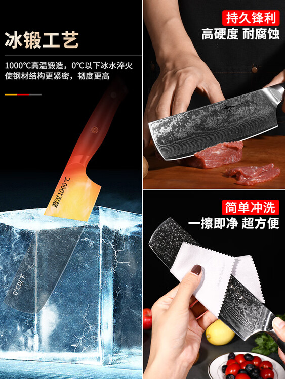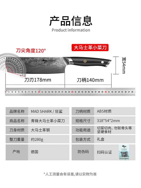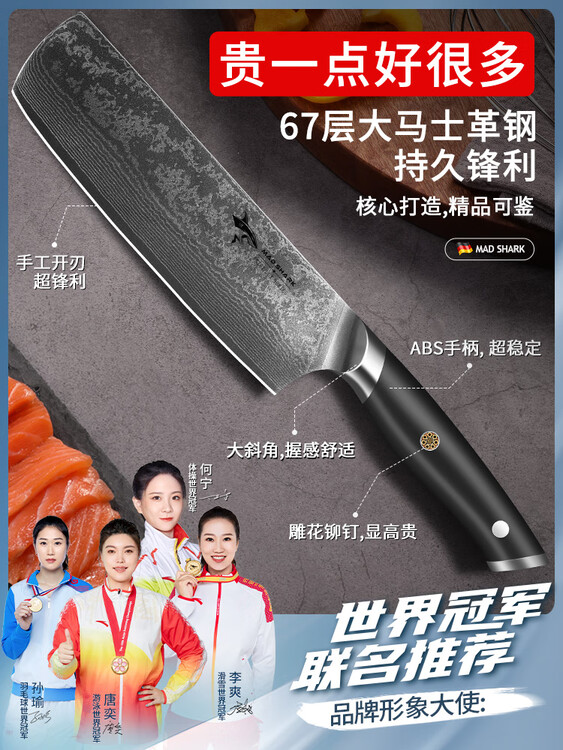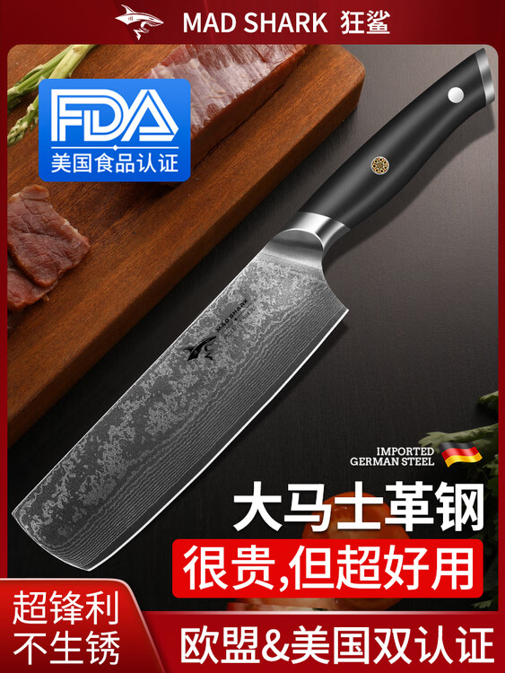 Mad Shark Дамасский нож с тремя лезвиями Qingfeng - острый и практичный. Категория: Нож Сантоку. Спецификации: 60° выше 20 см 141 мм