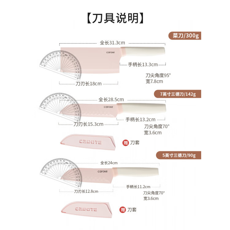 Carote Набор ножей из 5 предметов. Категория: Китайский кухонный нож. Спецификации: Более 60 мм x 133 мм x 18 см