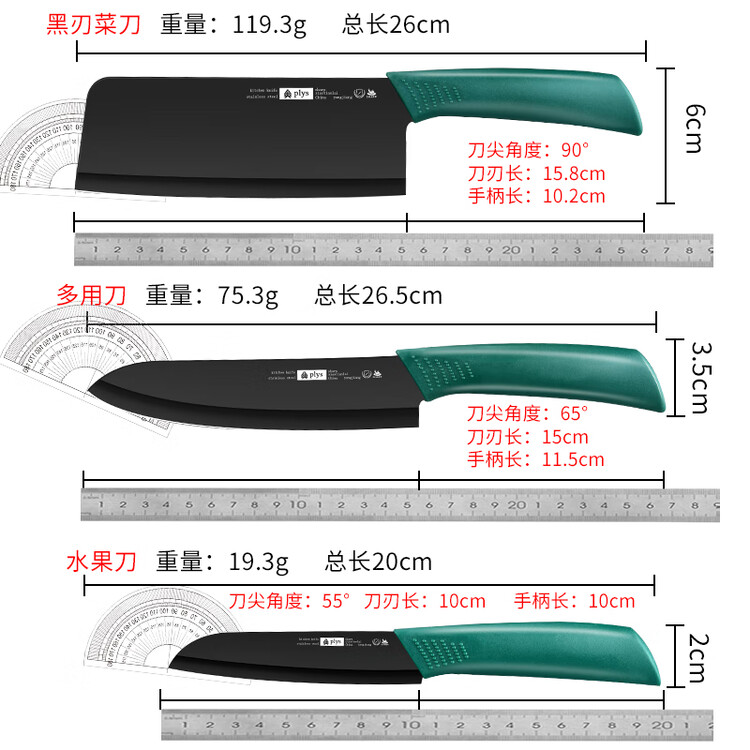 Plys Набор кухонных ножей с разделочной доской, 4 предмета