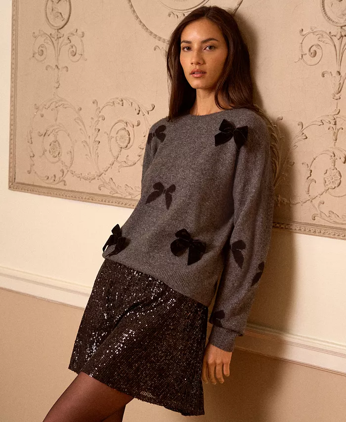 CeCe дополняет этот очаровательный свитер бантами, которые украшены деталями вязки в технике интарсия и 3-D аппликациями.