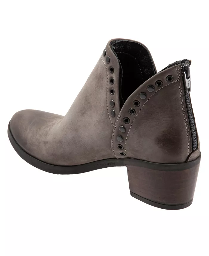 Cora - это ботильоны с глубокими боковыми вырезами, украшенные металлическими люверсами и заклепками. Молния сзади позволяет легко надевать и снимать ботинки.