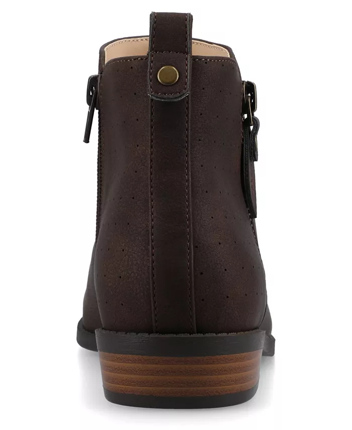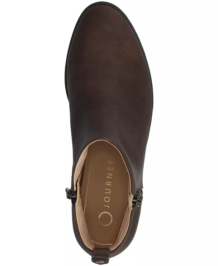Ellis от Journee - очаровательное дополнение к вашей коллекции ботильонов. Эти ботильоны застегиваются на молнию внутри и декоративную молнию снаружи, имеют потертый цвет и текстуру с точечным отверстием на пятке. Миндалевидный носок и низкий блочный каблук завершают этот дизайн. Ботильоны Journee обеспечат вам комфортный и стильный образ, идеальный как для офиса, так и для веселой вечеринки с подружками. Также доступны модели большой ширины.