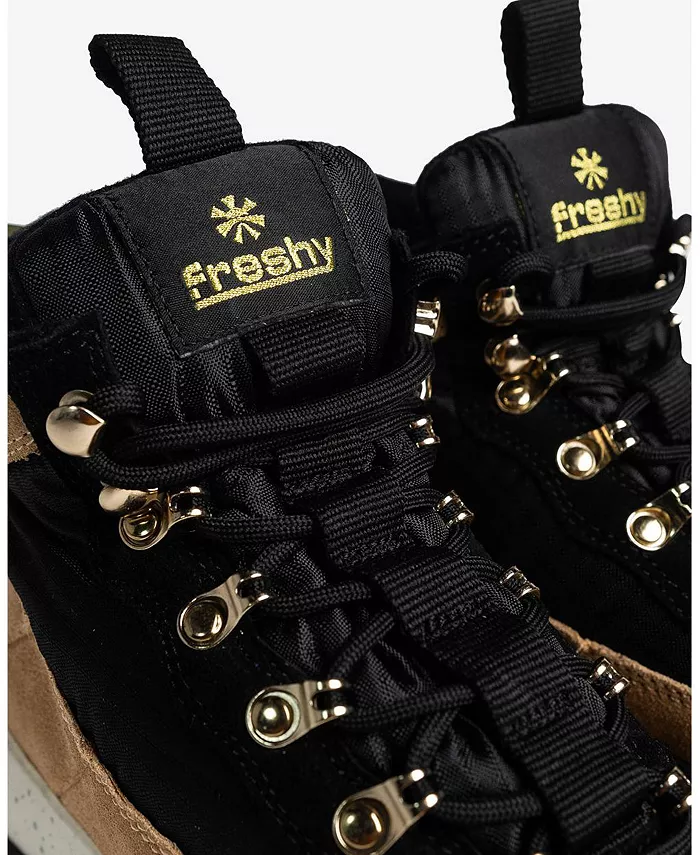 Freshy Navigator: Жесткость там, где это важно. Свежесть там, где это важно. Freshy Navigator сочетает в себе техническую производительность с улучшенной уличной одеждой. Разработанные для непредсказуемой погоды и любого типа местности, эти гибридные кроссовки-ботинки не просто идут в ногу - они лидируют как по функциональности, так и по моде. Изготовленные из прочного сочетания замши, кожи и синтетики, внешние части имеют смелый, структурированный вид, способный выдерживать самые суровые условия. Внутри сверхтеплая подкладка сохраняет тепло, а комфортная промежуточная подошва амортизирует и защищает при каждом шаге. Прочная резиновая подошва с высоким сцеплением обеспечивает сцепление как на скользких улицах, так и на неровной поверхности, а интегрированная система шнуровки обеспечивает надежную посадку, куда бы вы ни привели.