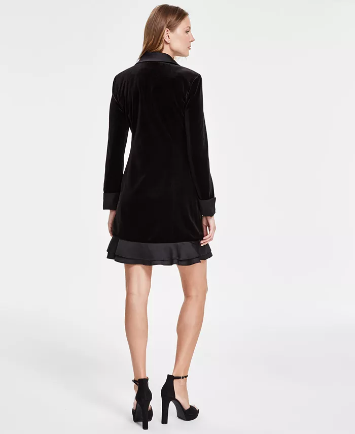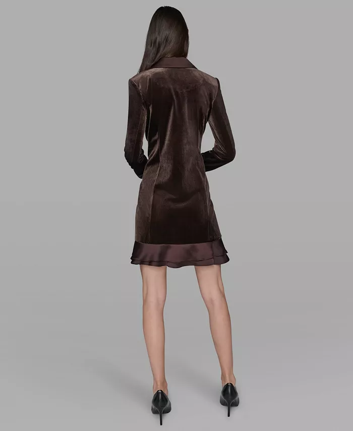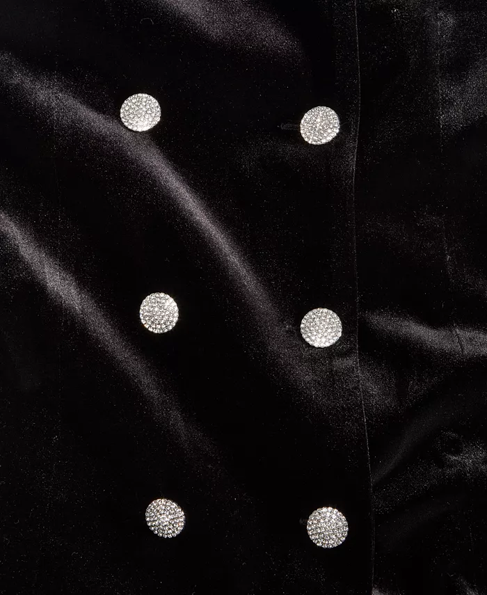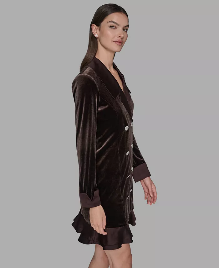 KARL LAGERFELD PARIS создает изысканный стиль, сочетая элегантный силуэт-футляр с дизайном блейзера в этом безупречном платье, отделанном бархатом и декорированными пуговицами для создания декадентского образа.