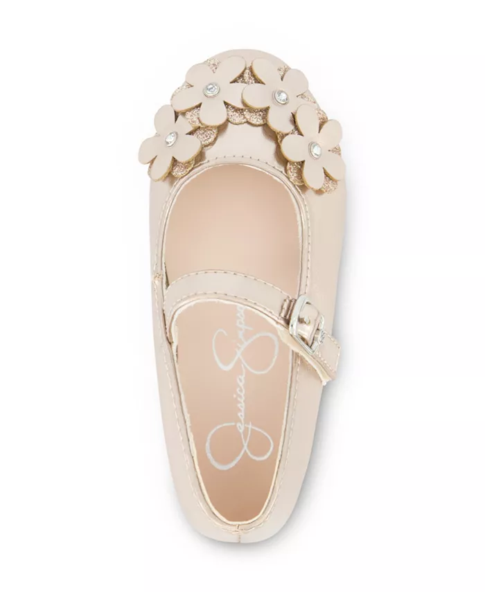 Балетки с пряжкой и логотипом, украшенные объемными цветами на мыске. Легко надевать и снимать. Идеально подходят для нарядных мероприятий. Верх из кожи.