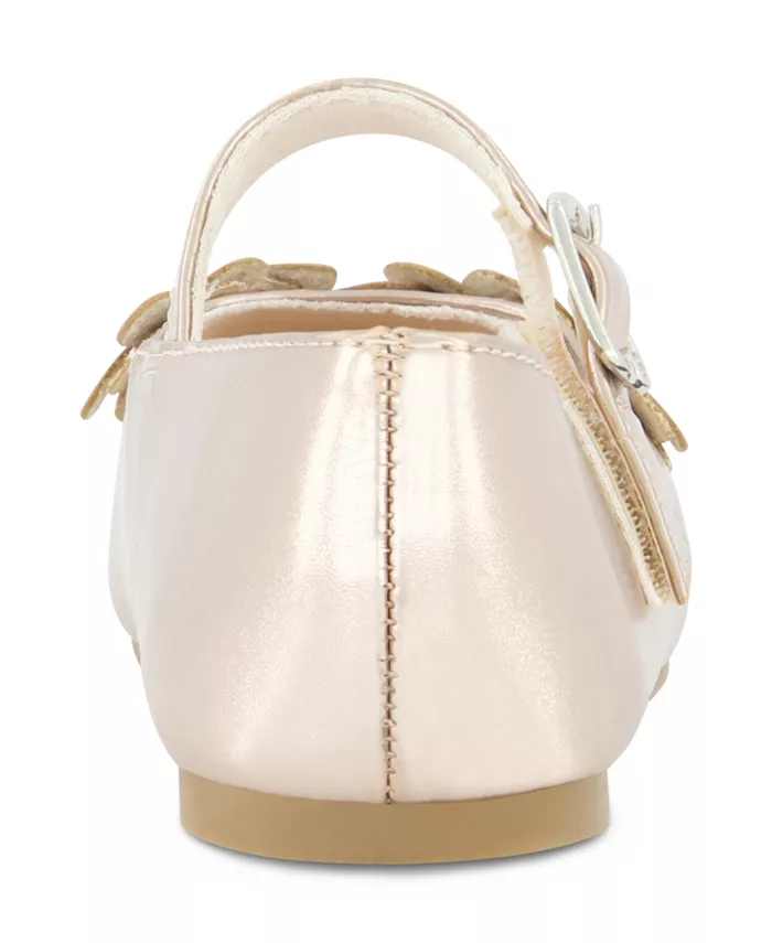 Балетки с пряжкой и логотипом, украшенные объемными цветами на мыске. Легко надевать и снимать. Идеально подходят для нарядных мероприятий. Верх из кожи.