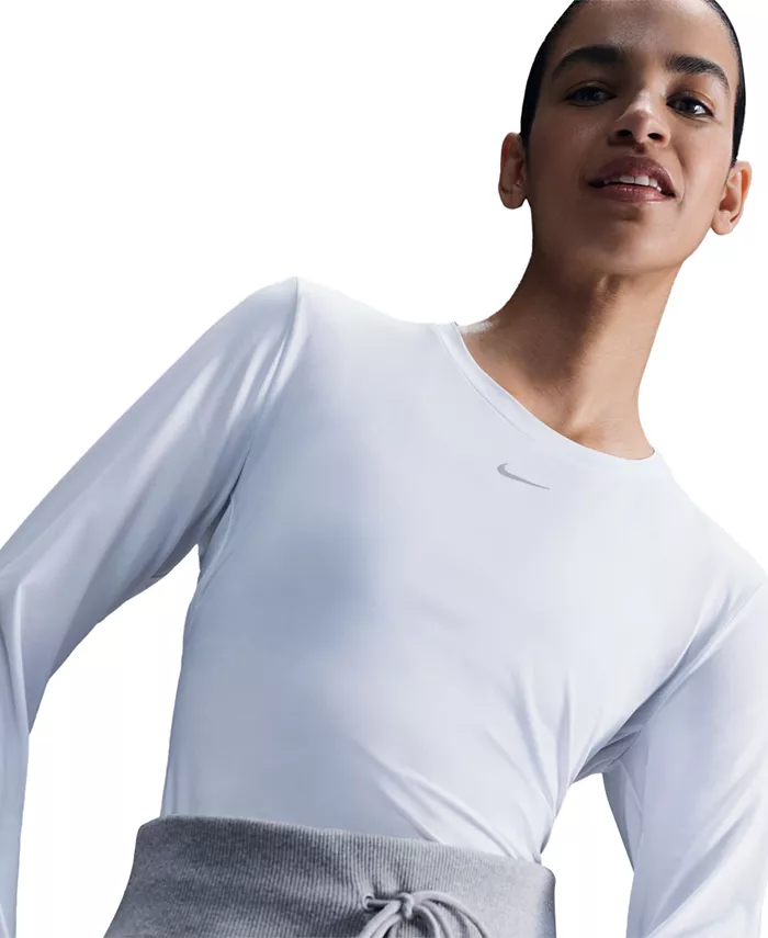 Бегайте, занимайтесь спортом или отдыхайте в лонгсливе от Nike One. Манжеты с отверстиями для больших пальцев надежно фиксируют рукава, а ткань Dri-FIT обеспечивает комфорт и сухость.