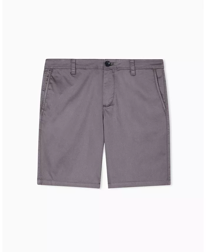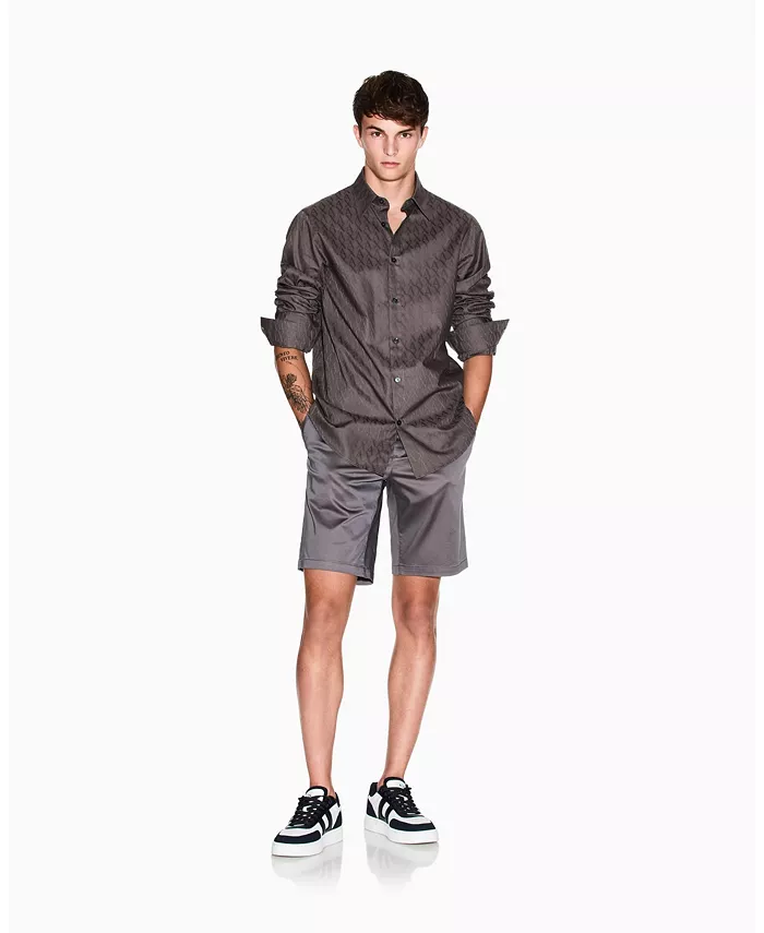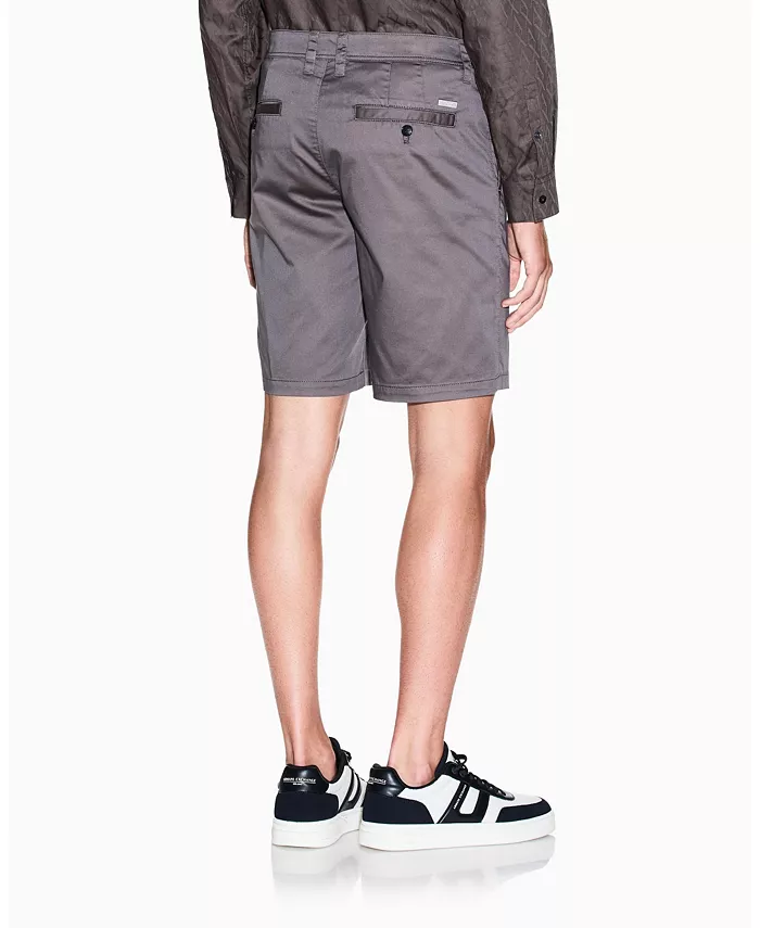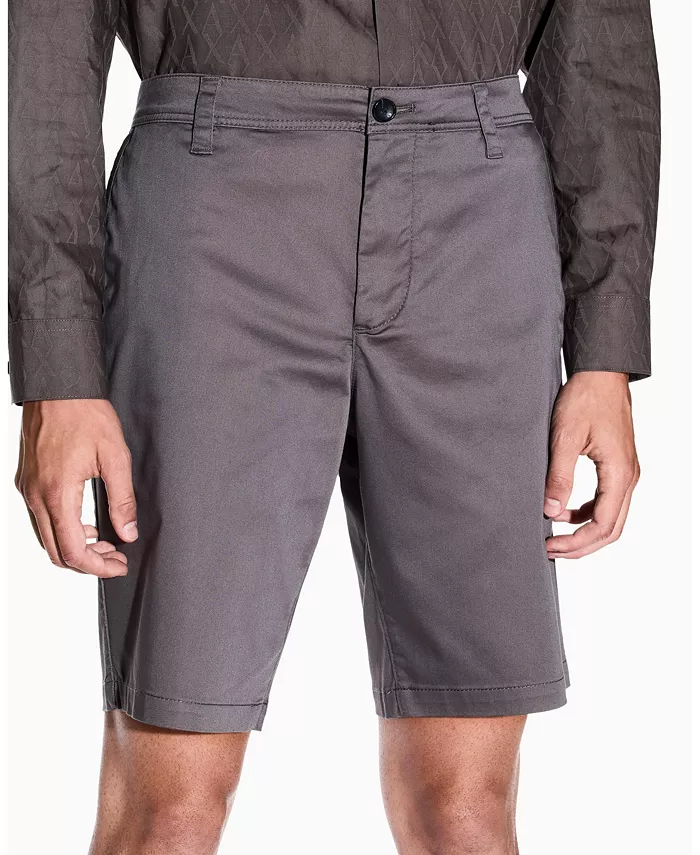 Бермуды из эластичной хлопковой смесовой ткани с атласным эффектом. Модель застегивается на молнию и пуговицы, имеет шлевки для ремня, а также боковые и задние карманы.