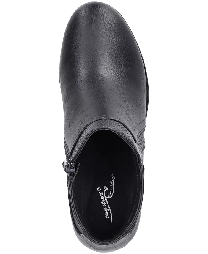 Ботильоны Langley на блочном каблуке от Easy Street - стильные и актуальные модели с верхом из нескольких материалов, который притягивает взгляды. Конструкция Comfort Wave и ультралегкая стелька Easy Motion обеспечивают исключительный комфорт без ущерба для стиля. Сочетайте их с любимыми осенними нарядами для идеального образа на каждый день. Внутренняя молния позволяет легко надевать и снимать обувь.