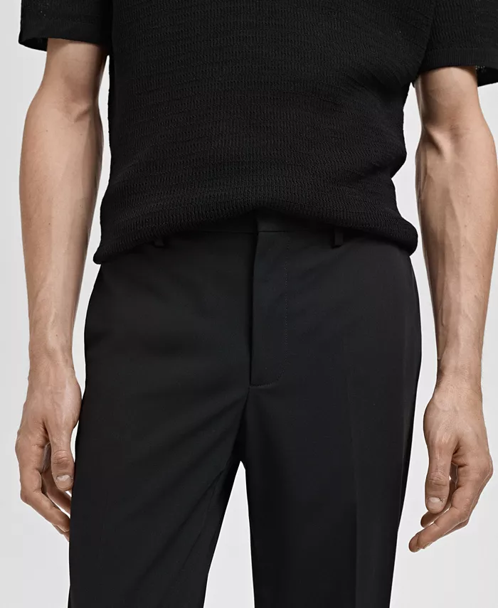Брюки Mango Super Slim-Fit из эластичной ткани, созданные для создания элегантного образа, станут прекрасным дополнением к деловому образу. Эти брюки средней посадки из полиэстеровой эластичной ткани отличаются суперузким кроем, шлевками для ремня, застежкой на пуговицу, крючок и молнию спереди, отутюженными лампасами и множеством функциональных карманов.