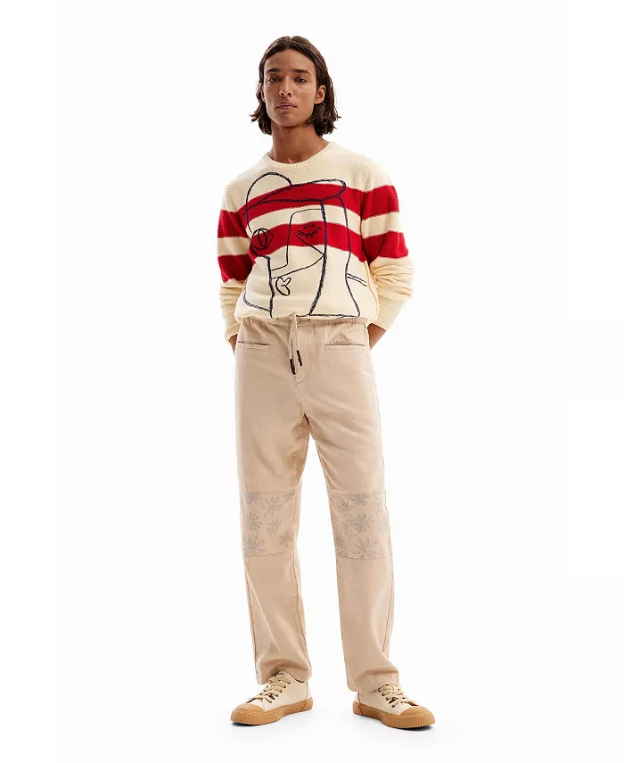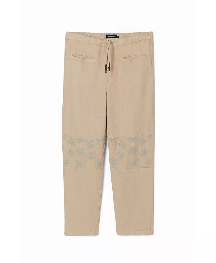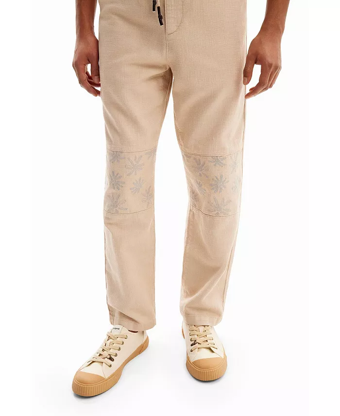 Брюки-джоггеры прямого кроя с эластичной талией и цветочным принтом на коленях