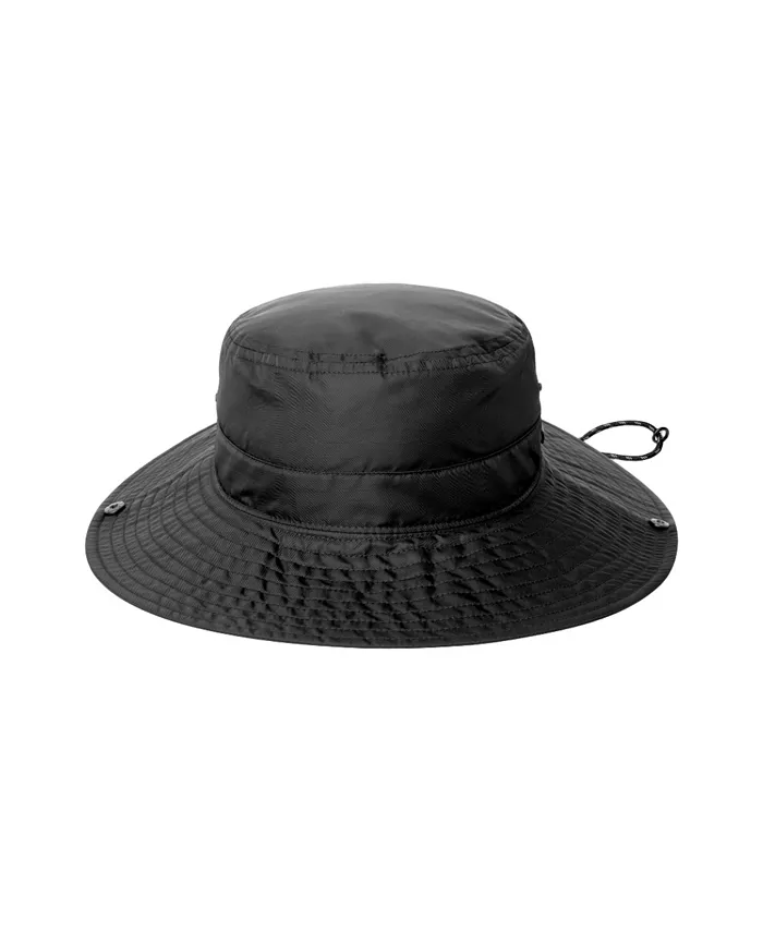 Ведро Flux Gorpcore от Kangol создано для любых приключений. Оно создано по форме широкополой шляпы для джунглей и изготовлено из водоотталкивающей ткани из смеси хлопка и нейлона. На макушке две кнопки позволяют регулировать поля в нескольких направлениях, а также есть съемный подбородочный шнур.