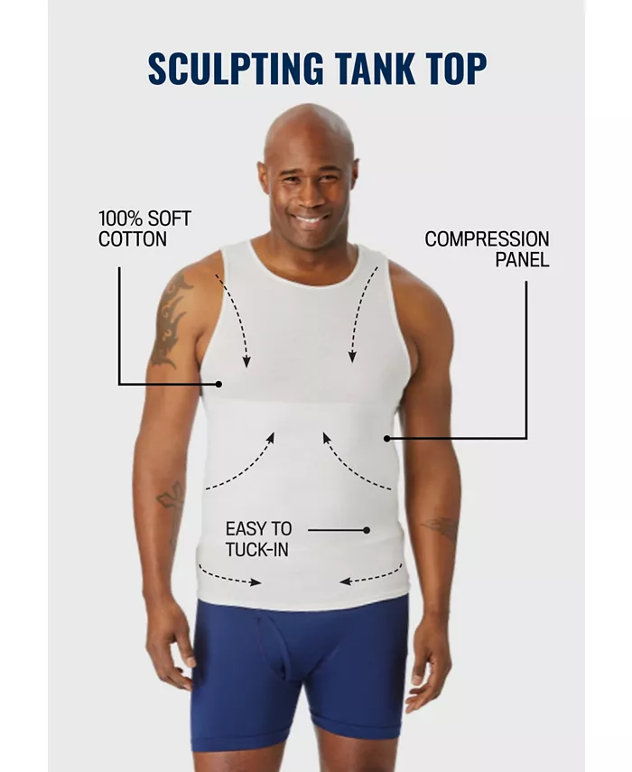 Великолепная майка с компрессионной вставкой в средней части, которая сглаживает и моделирует фигуру под рубашкой. Изготовлена из влагоотталкивающего материала, чтобы вы оставались в прохладе и сухости в течение всего дня. Корректирует фигуру. Влагоотвод. Размер: Большой (около 32 дюймов), Высокий (около 34 дюймов). Вставка: 100% хлопок: полиэстер/спандекс. Машинная стирка. Импортный товар.