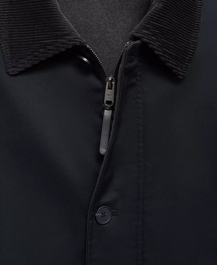Водоотталкивающая куртка с вельветовым воротником от Mango отличается прочностью и легкостью. Изготовлена из смеси хлопка и льна.