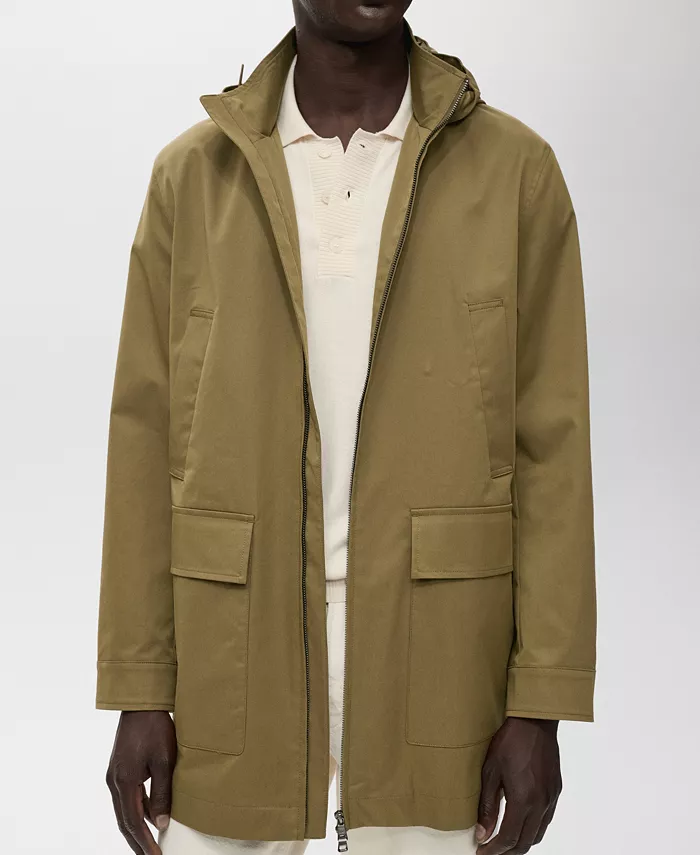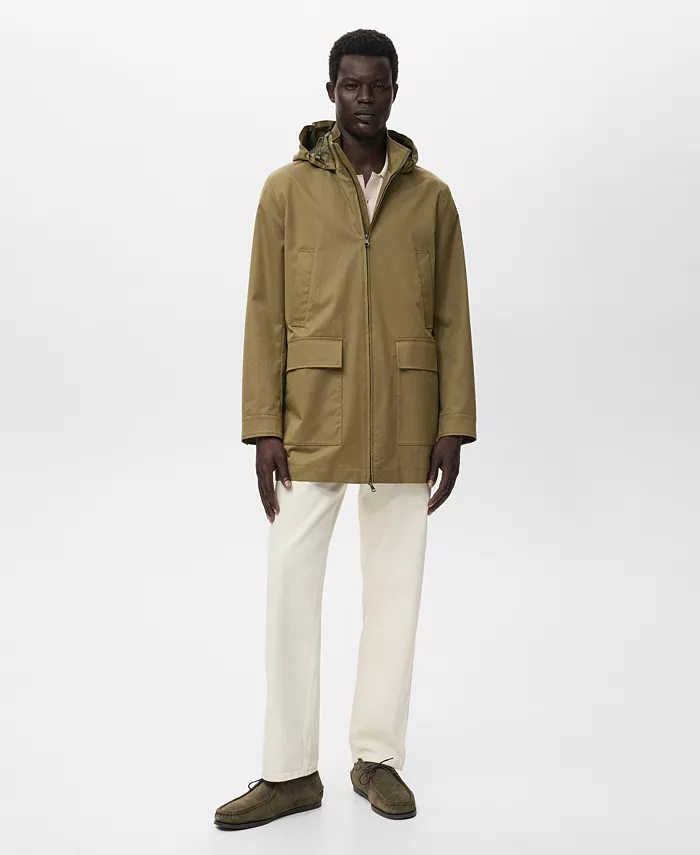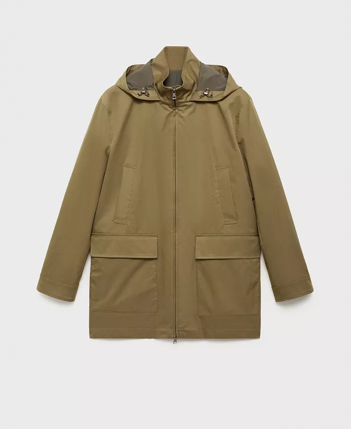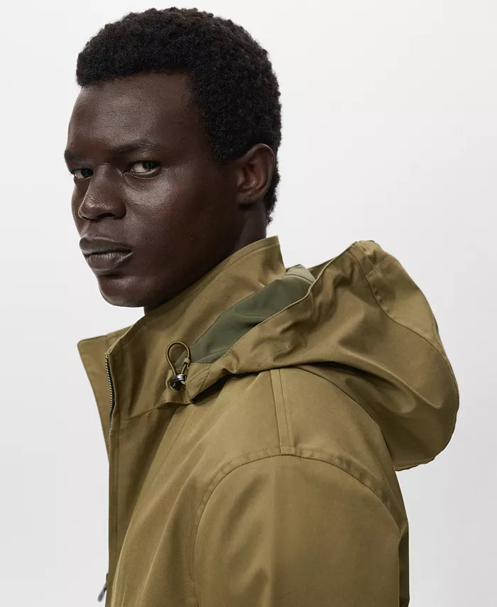 Водоотталкивающая парка с капюшоном от Mango, практичная и устойчивая к любым погодным условиям. Изготовлена из технологичной водоотталкивающей ткани.