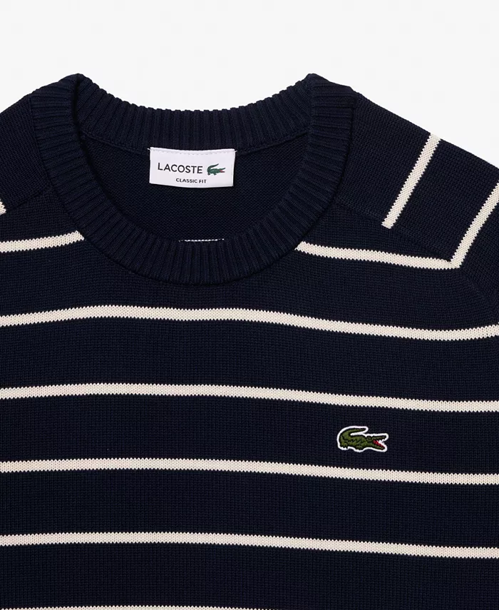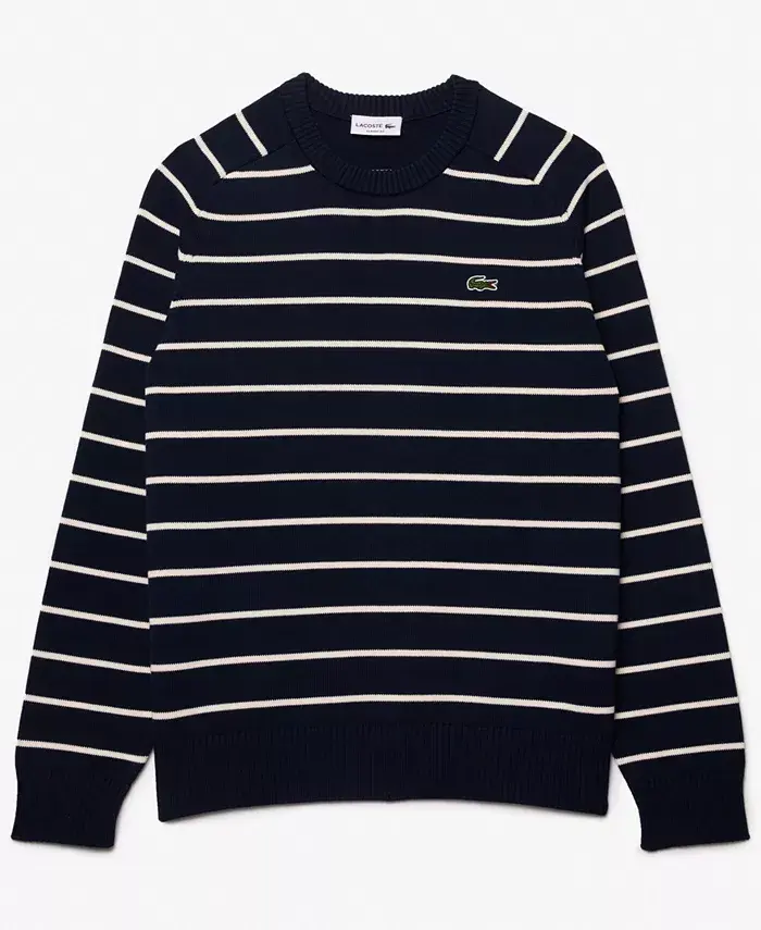 Выглядите стильно и не мерзните в этом свитере Lacoste классического кроя с удобным круглым вырезом. Он украшен эффектным полосатым 3D-вязаным узором и культовым вышитым изображением крокодила на груди. Универсальный дизайн позволяет носить его как в повседневной жизни, так и в стиле smart-casual.